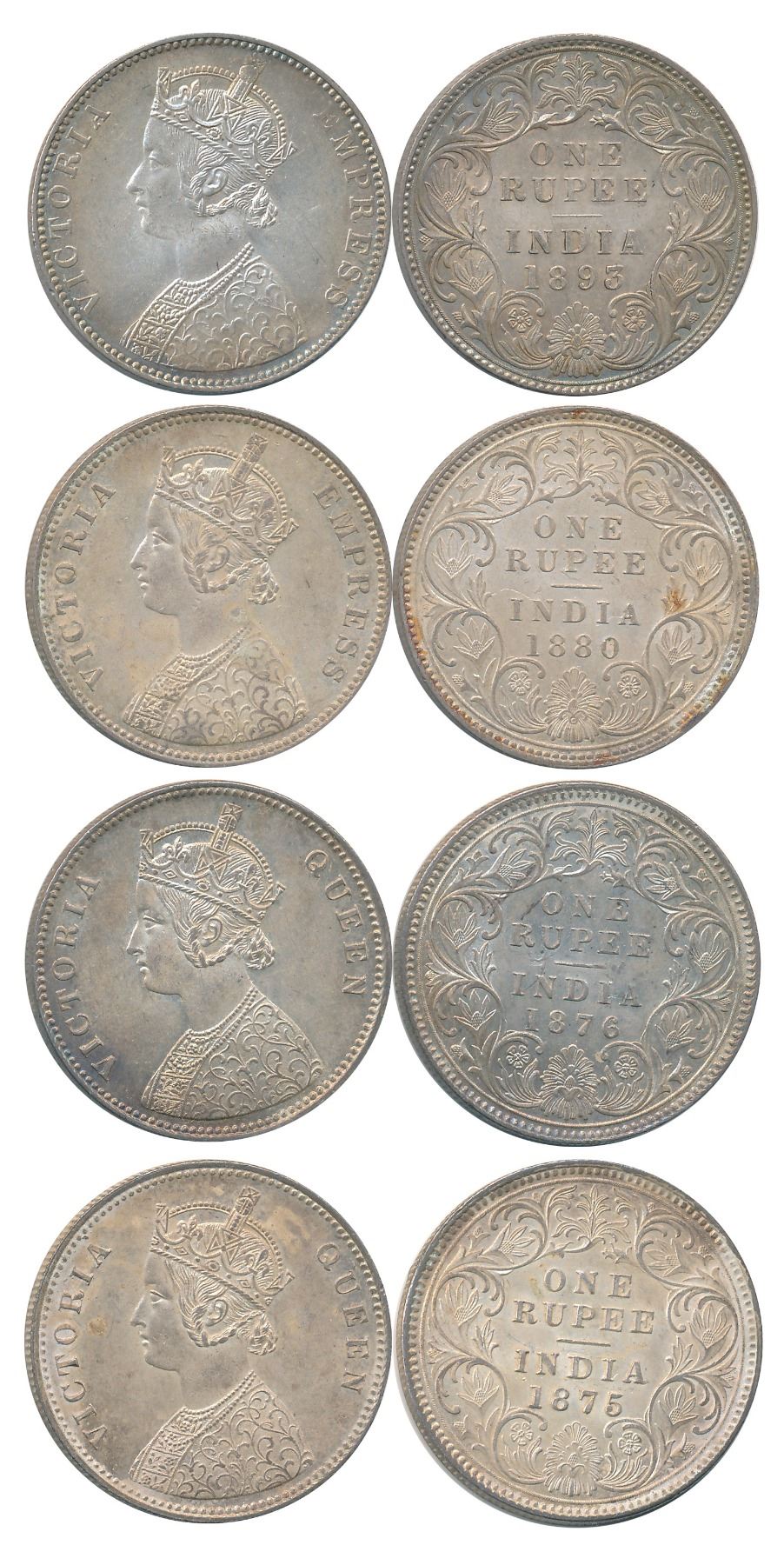 Victoria, Silver Rupees (4), 1875, 1876, 1880 & 1895. Brilliant about uncirculated. 4 coins.