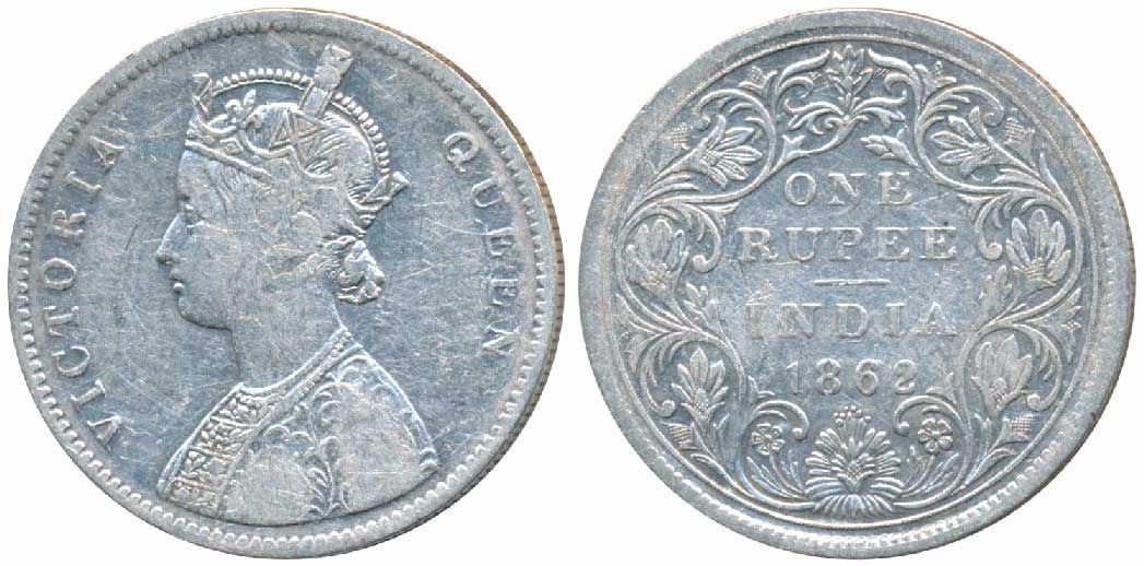 Victoria Queen, Silver Rupee, 1862, Bombay Mint, A / II / 0 / 8, (Prid 89). Fine+, Very Rare.