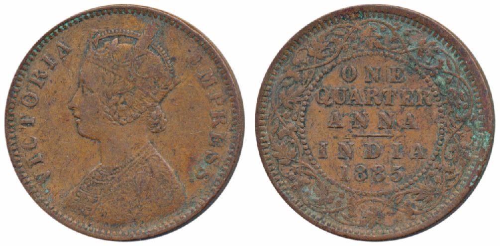 Victoria Empress, Copper ¼ Anna, 1885, Calcutta Mint, No mm, (Prid 618). Very Fine+, Rare.
