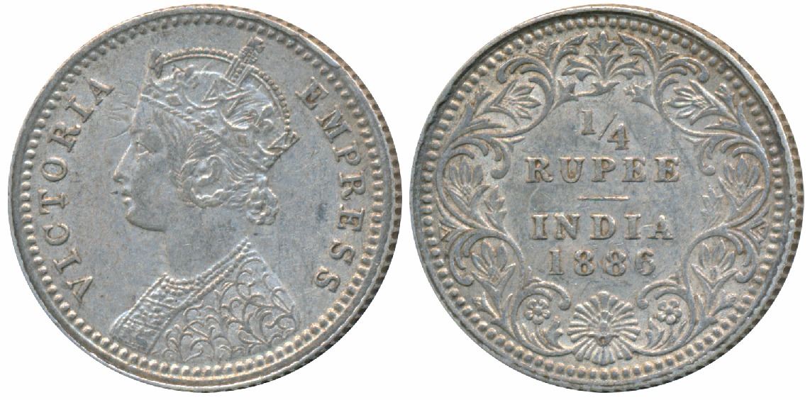 Victoria Empress, Silver ¼ Rupee, 1886, Calcutta Mint, C / II / C incuse, (Prid 391). About Extremely Fine.