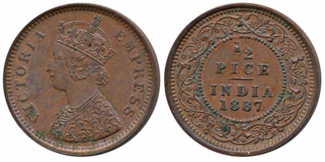 Victoria Empress, Copper ½ Pice, 1887, Calcutta Mint, (Prid 719). About Uncirculated.