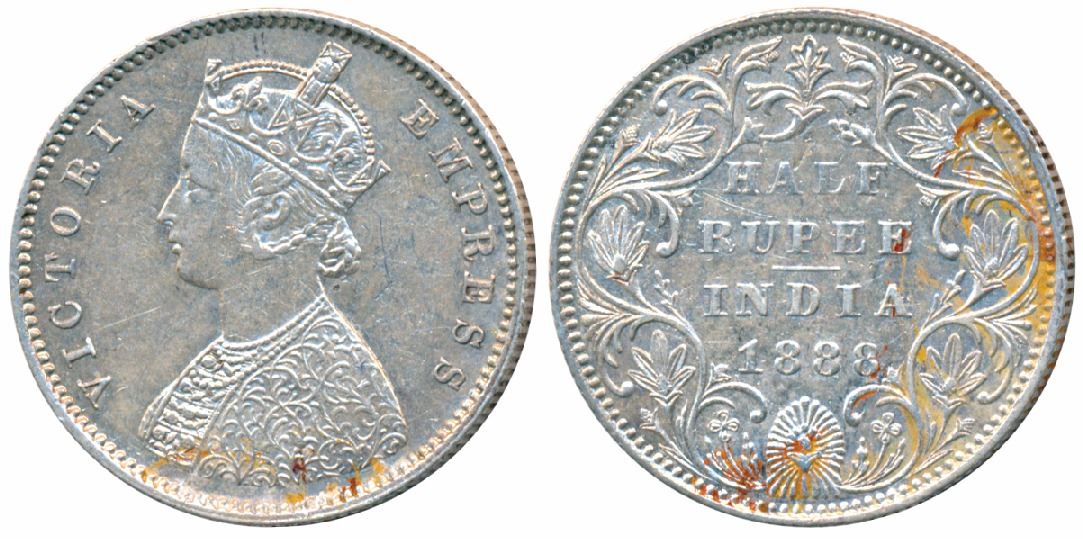 Victoria Empress, Silver ½ Rupee, 1888, Bombay Mint, A / II / B raised, (Prid 298). About Extremely Fine.
