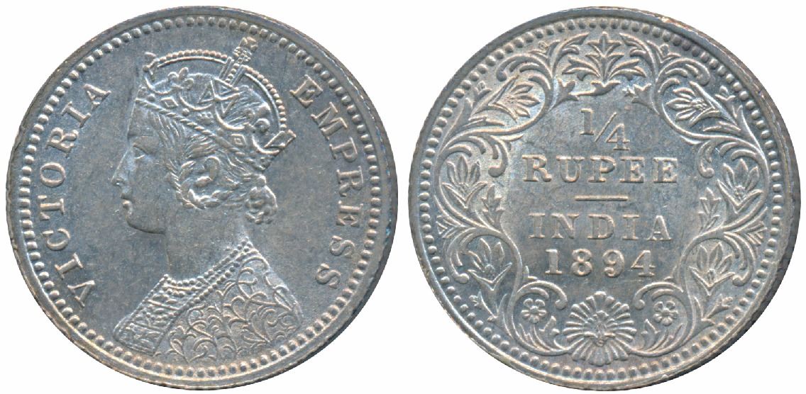 Victoria Empress, Silver ¼ Rupee, 1894, Calcutta Mint, C / II / C incuse, (Prid 399). Extremely Fine.