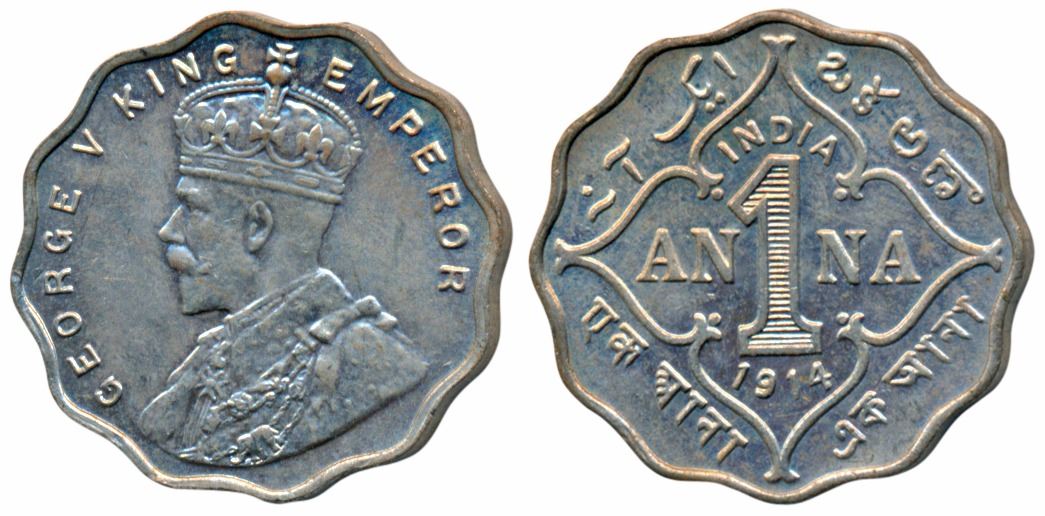 George V, Cupro-Nickel Anna, 1914, Bombay Mint, (Prid 944). About Uncirculated, Rare in such a high grade.