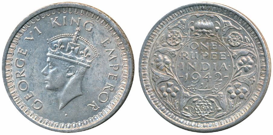 George VI, Half Silver Rupee, Bombay Mint, 1942, Ba / Ia, Square mint mark in place of dot, Unlisted in Pridmore. About Uncirculated, Rare.