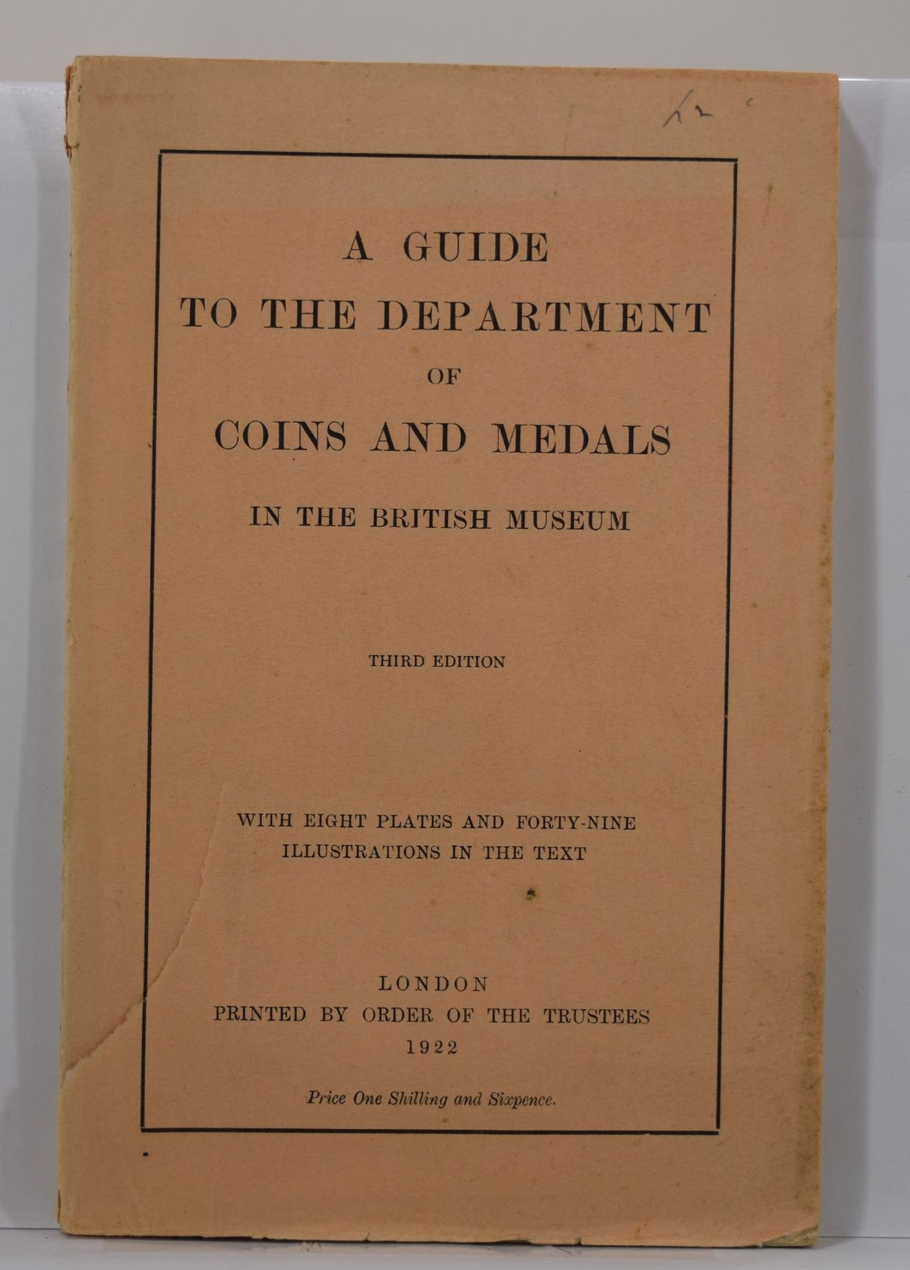 Trustees of the British Museum. A GUIDE TO THE DEPARTMENT OF COINS AND MEDALS IN THE BRITISH MUSEUM. The Trustees of the British Museum. 1922. 12mo, 94 pages; Softcover; 8 plates. Subject: Coinage - Great Britain