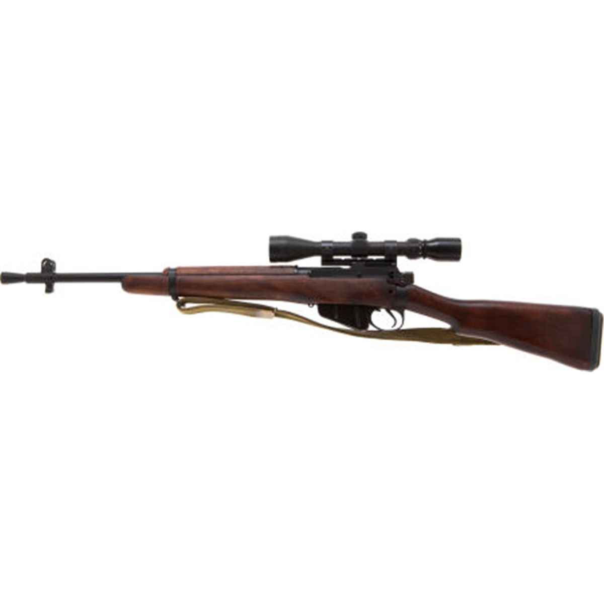 British No. 1 Mark 5 Jungle Carbine. Serial no. 38071, .303 caliber, 20-inch barrel mounted with a Famous Maker brand FM39X40 telescopic sight. Flash suppressor. Import stamps. Blued finish. Walnut stock and armguard. Sling mounts. Web sling. Condition: Very to excellent as refinished and reconfigured. All showing light age wear overall. All wood is excellent. Action very good. NRA FIREARMS FOR FREEDOM PROGRAM