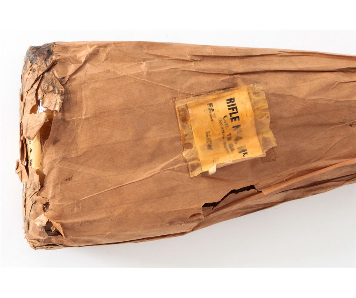 British No. 4 MK II Bolt Action Rifle, #A2139, .303 cal., 25-1/2'' barrel, black finish, birch stock. Condition is new, still remaining in its original wrap with preservative. Est.: $300-$500. (C&R)