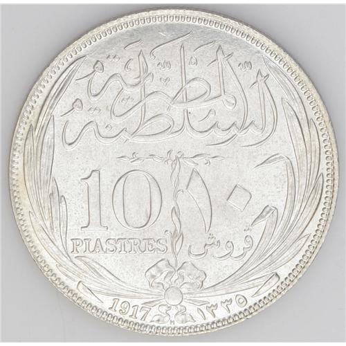 <B>British Occupation Heaton Mint Specimen Strikes, </B></I>KM318.2 5 Piastres 1917H, choice brilliant UNC with slightly prooflike fields and KM320 10 Piastres 1917H, brilliant UNC with virtually perfect surfaces. Although not fully Proof these two examples are clearly superior to business strikes and were presumably part of the Heaton Mint Archives Collection.
