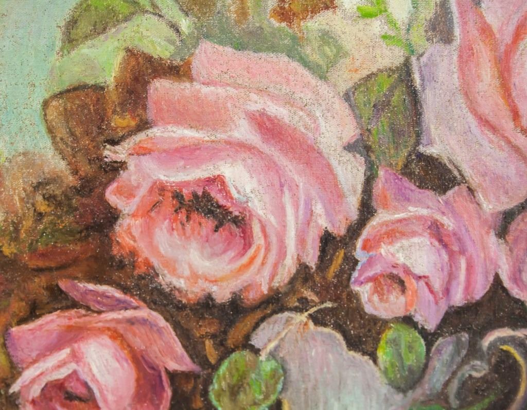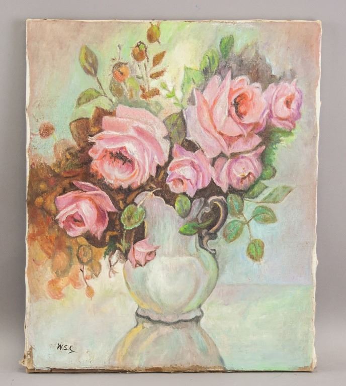 Oil on canvas. Featuring still life flowers. Signed W.S.C on the lower left corner. 46 x 38 cm (18 x 15 inches)