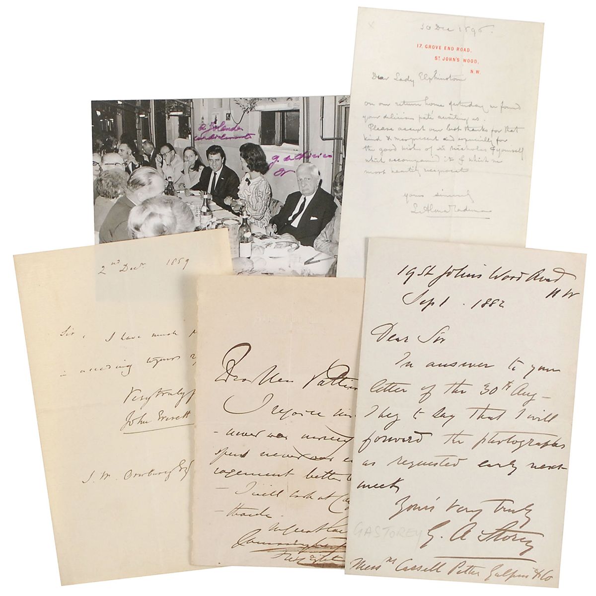 Collection of five items signed by prominent 19th and 20th century British painters, including: Lawrence Alma-Tadema (ALS), Frederic Leighton (ALS), John Everett Millais (ALS), George Adolphus Storey (ALS), and Giorgio de Chirico (SP). In overall fine condition.