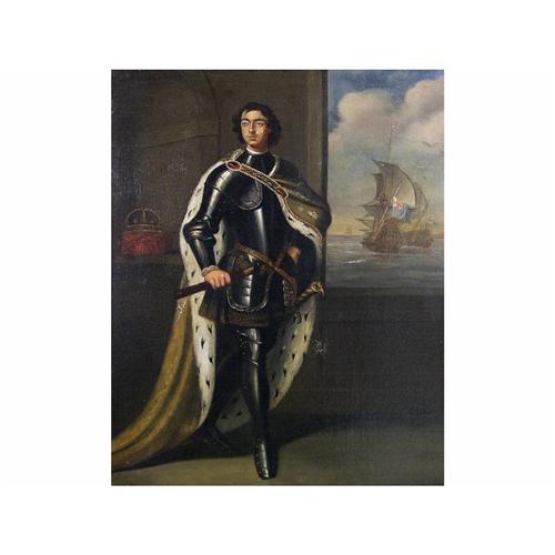 [19th century] PETER THE GREAT, TSAR OF RUSSIA oil on canvas 34.5 x 28.5 in. (87.5 x 72.4 cm) Note: This painting is one of many inspired by the original portrait, found in The Royal Collection, and painted in 1698 by British artist Sir Godfrey Kneller at the time of Peter the Great's visit to England.