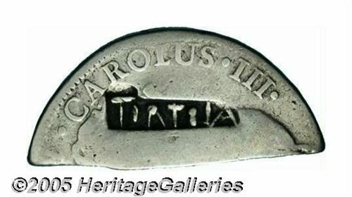 <B>4 Shillings 1 1/2 Pence ND (1805-24), </B></I>KM19, TIRTILA in a rectangle c/s on a half of a Carlos III 8 Reales. The host coin is VG and the c/s is nice VF.