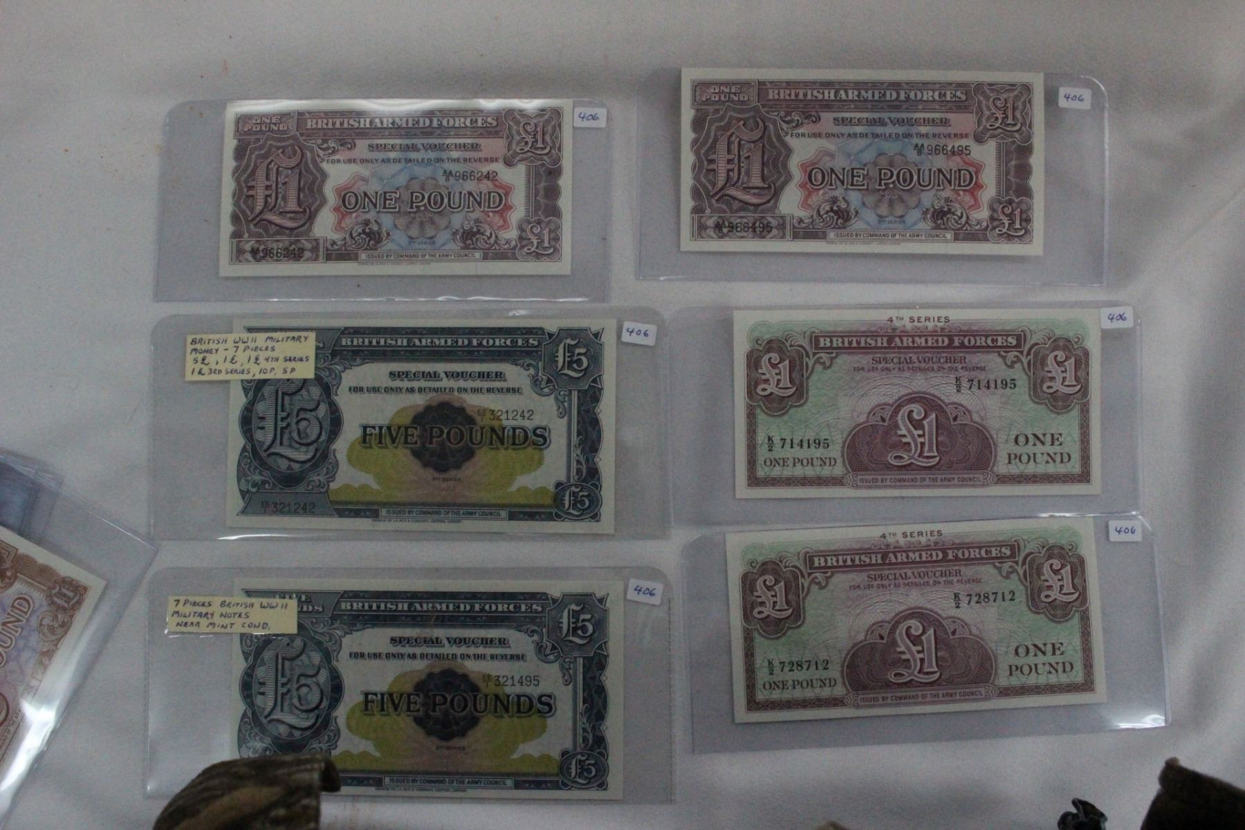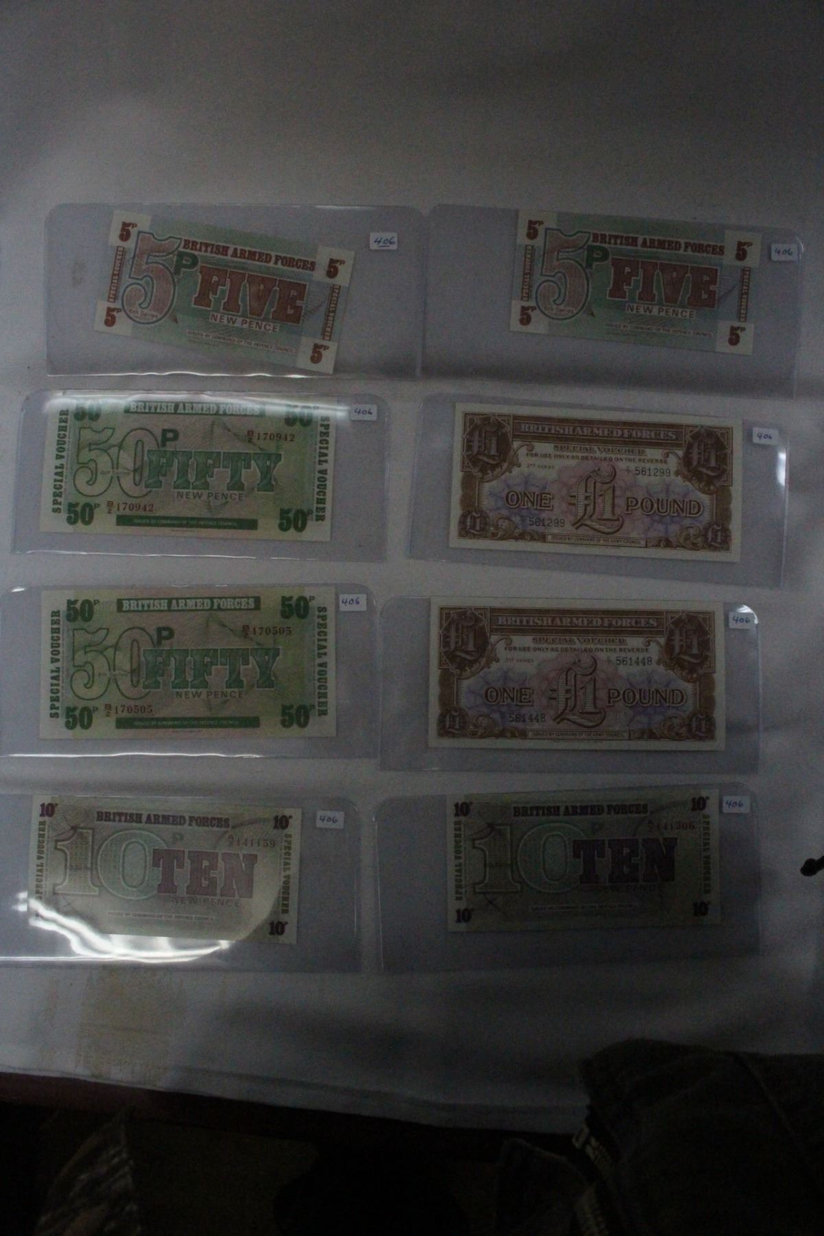 (2)5 Pound Notes; (6) 1 Pound Notes; (2) 50 Pence Notes; (2) 5 Pence Notes; (2) 10 Pence Notes