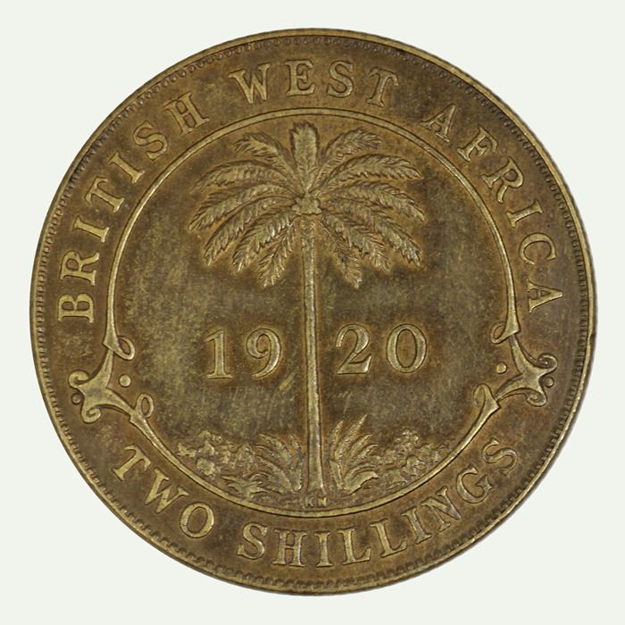 British West Africa 1920 KN 'Uniface Reverse Trial' Two Shillings, Evenly toned - Uncirculated