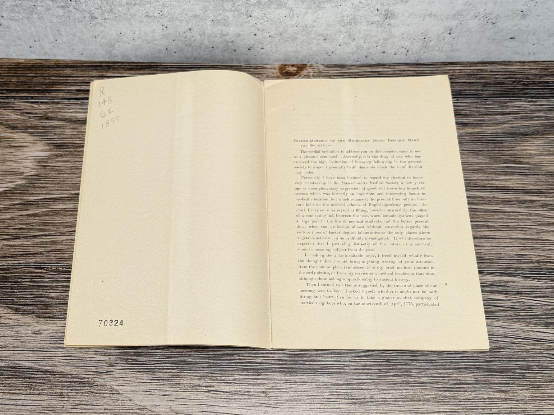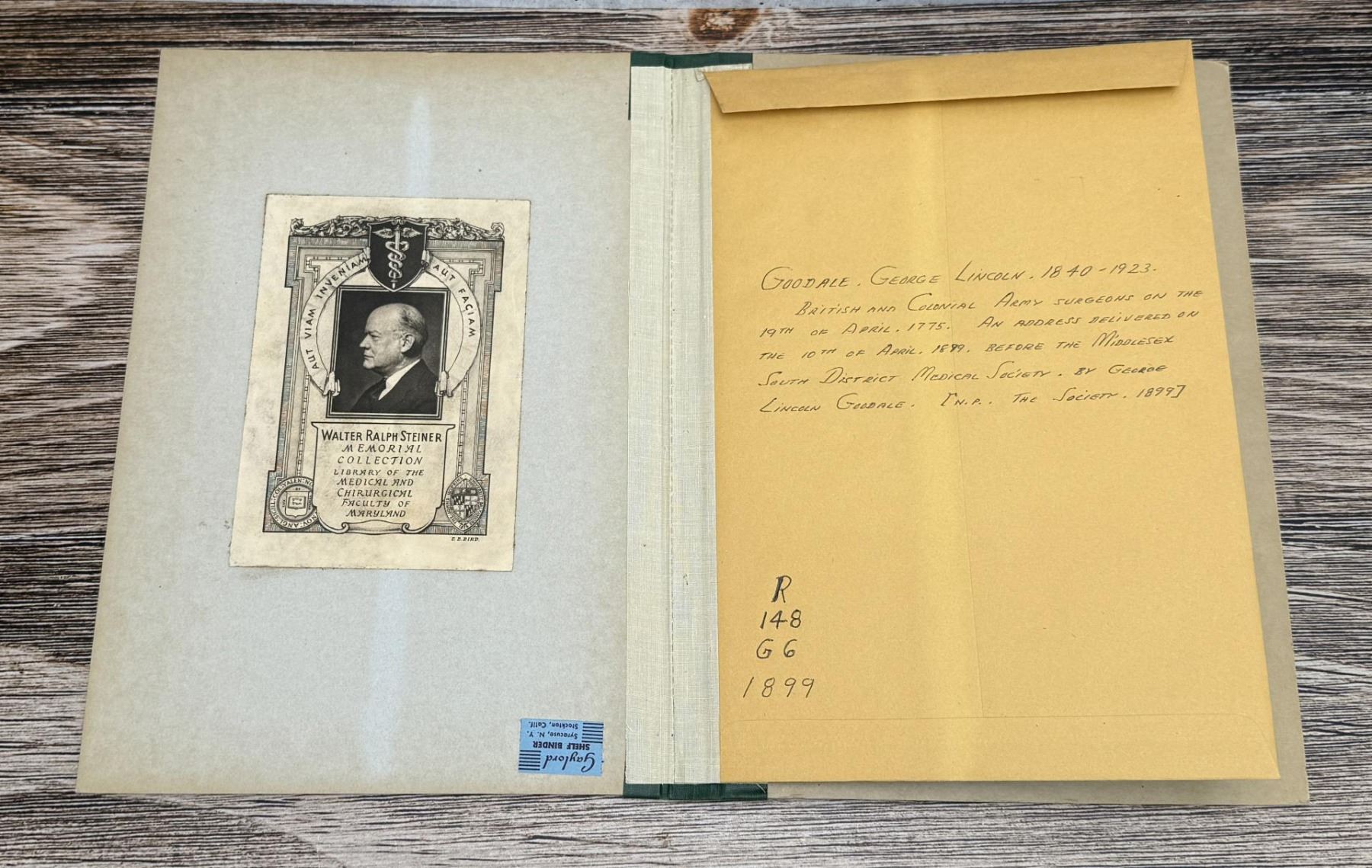 An Address Delivered on the 19th of April 1899, Before the Middlesex South District Medical Society. George Lincoln Goodale. Bookplate of Walter Ralph Steiner.