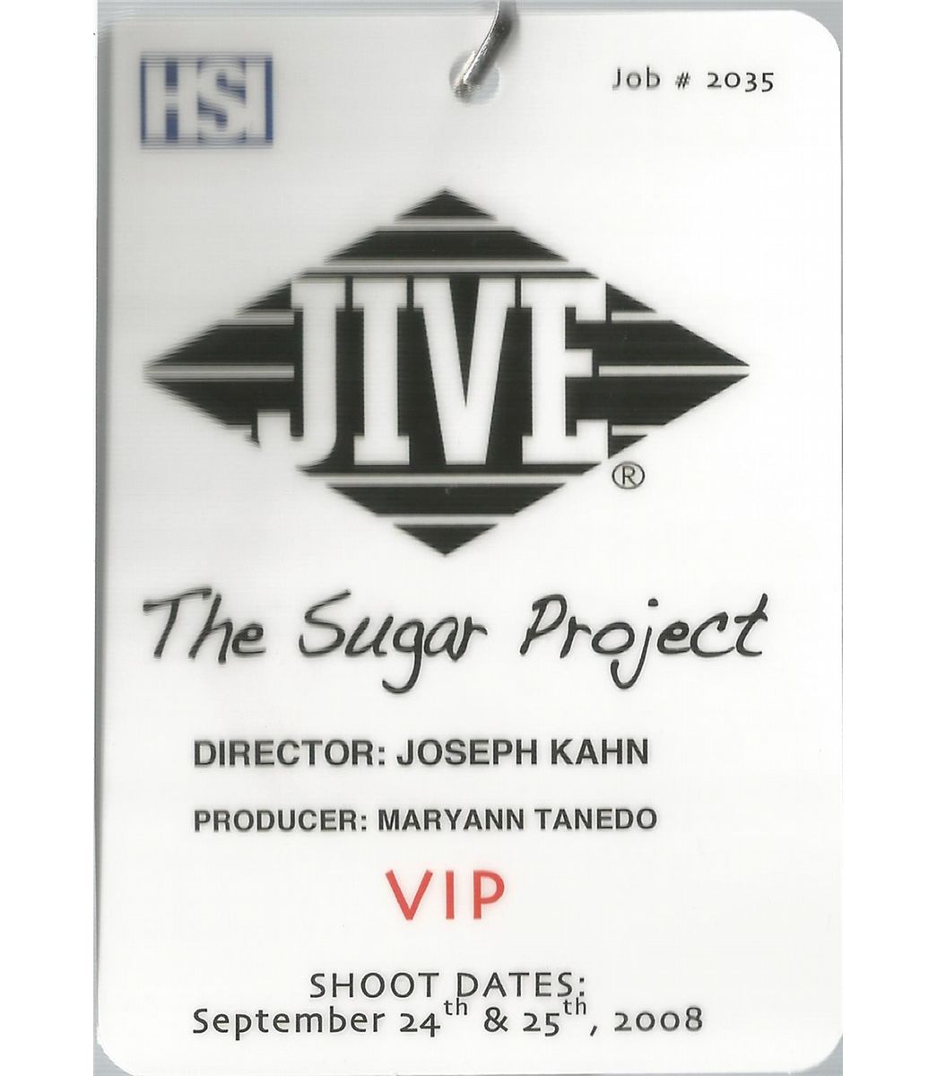 VIDEO WORN pasties and panty from the video “Sugar” as seen in the Jacuzzi scene with letter from producer and the original Jive Records laminated pass on a cord. You can see the makeup and use on the two pasties to cover her boobs as well as the nude col