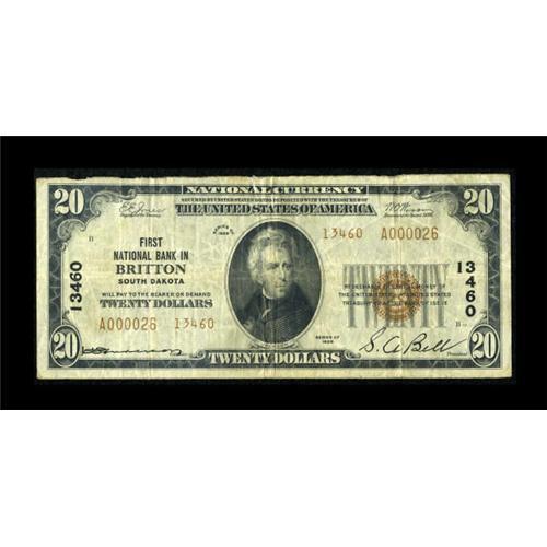Britton, SD - $20 1929 Ty. 2 First NB Ch. #