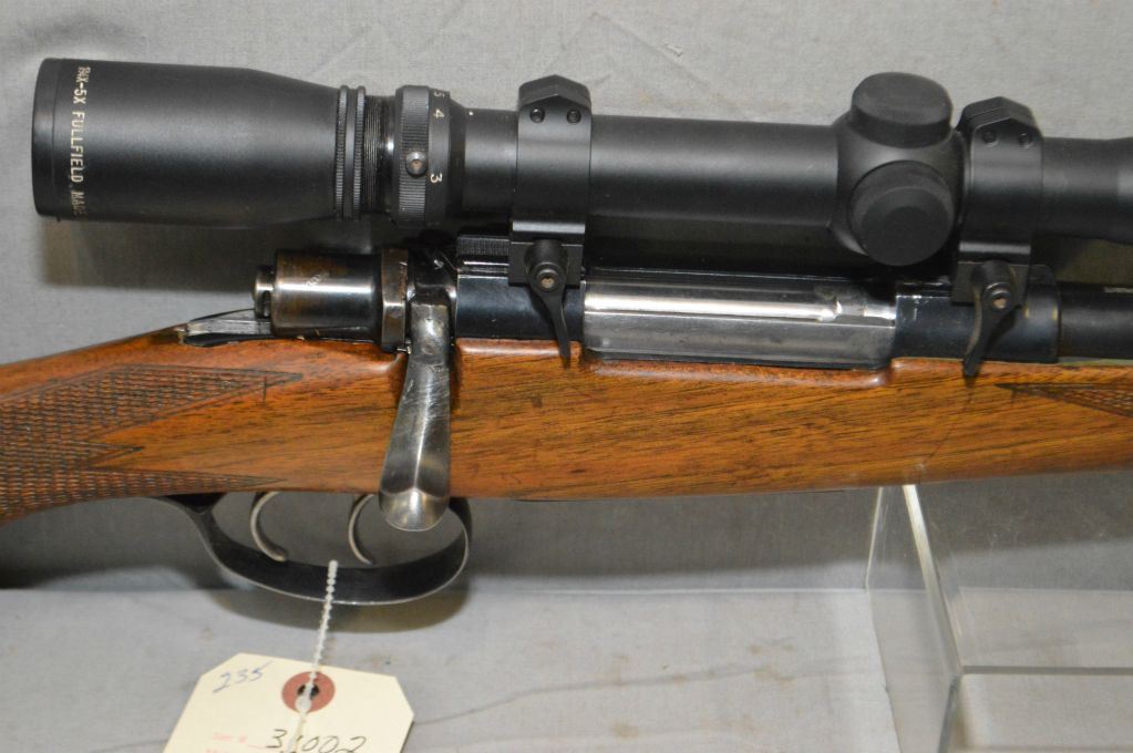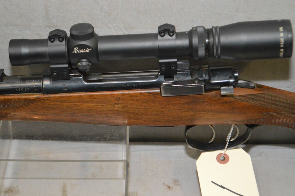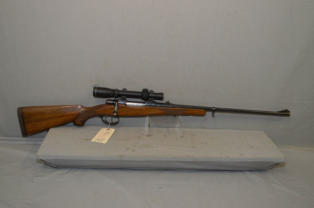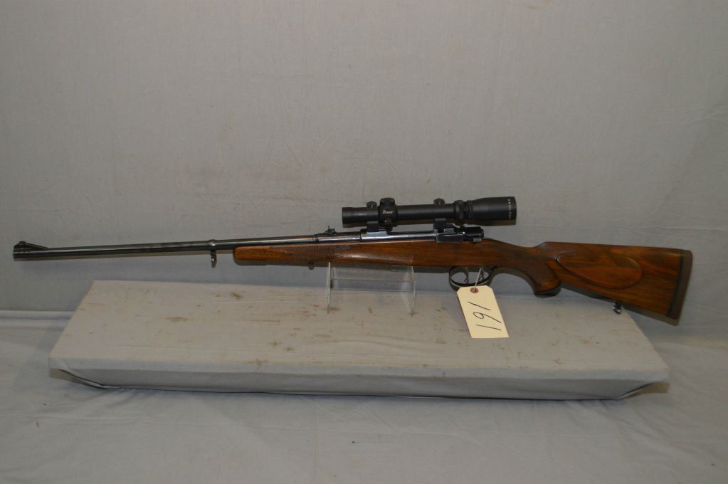 Brno Model Sporter Cal Changed to .280 Rem Cal ? Bolt Action Rifle w/ 24" bbl [ blued finish, barrel sights, also fitted w/ Burris 1 3/4 x 5 power variable scope, in quick off rings, double set triggers, broken & welded spoon style bolt, checkered pistol grip stock & forend w/ KICK- EEZ recoil pad, w/ sling swivels ] Ser # 31002