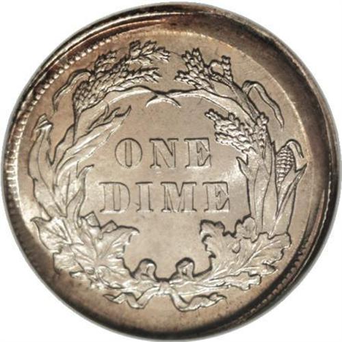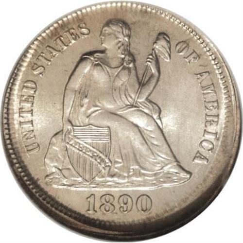 <B>1890 10C Seated Dime--Broadstruck--MS66 NGC.</B></I> An uncentered broadstrike, the piece gives the initial appearance of an off center strike toward 11 o'clock. A lustrous piece with well struck devices and a hint of honey color. Pristine except for a hair-thin vertical mark to the left of the L in LIBERTY. High grade Seated dimes with dramatic mint errors are very rare and desirable.<BR><BR><B>Coin Engraver:</B> Christian Gobrecht<BR><BR><b>Shipping:</b> Coins & Currency (<a target="_blank" href="http://www.heritageauctions.com/common/shipping.php">view shipping information</a>\)
