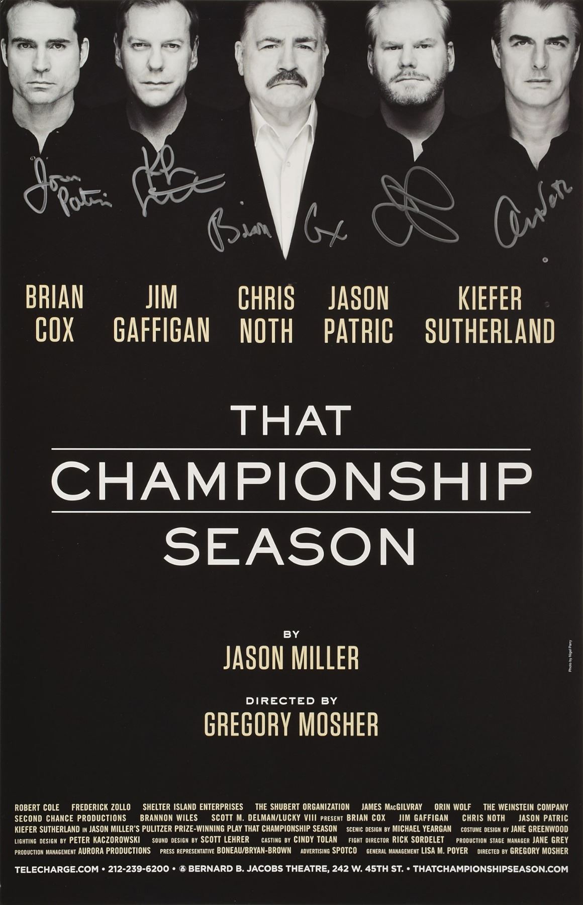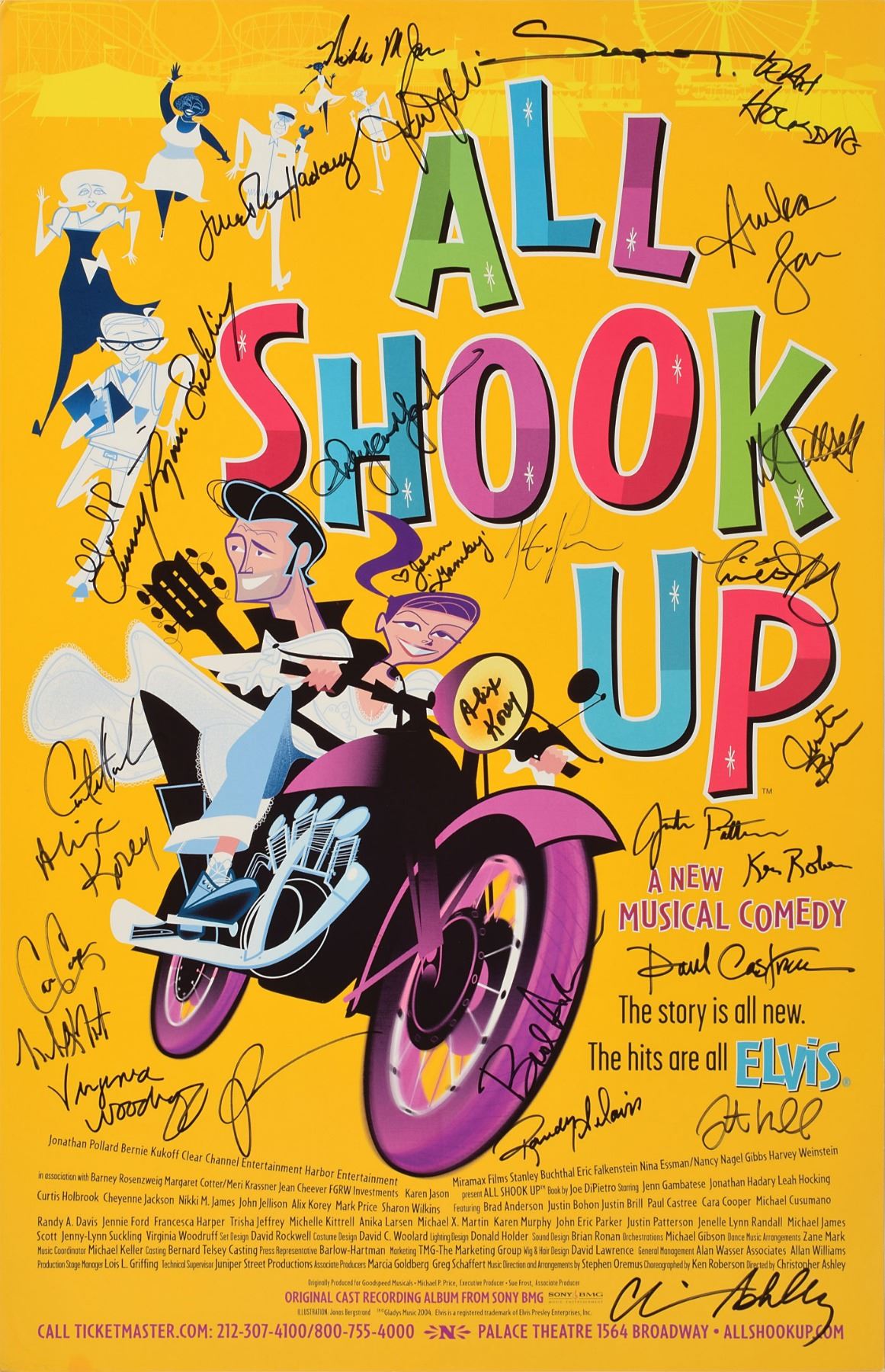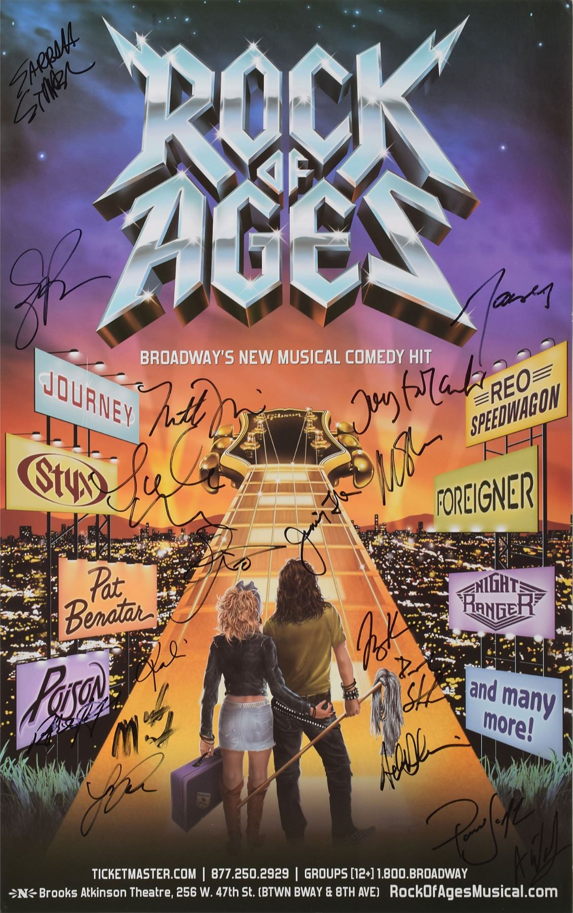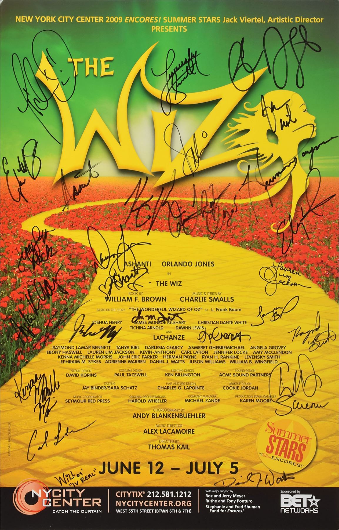 Collection of ten posters for various Broadway shows, ranging in size from 14 x 22 to 20 x 30, each signed in ink or felt tip by numerous cast members. Productions include: The Addams Family, All Shook Up, La Cage Aux Folles, Mary Poppins, Memphis, The Phantom of the Opera, The Philanthropist, Rock of Ages, That Championship Season, and The Wiz. The Philanthropist poster is affixed to a same-size foamcore mount. In overall fine condition, with a few mild corner tip dings.