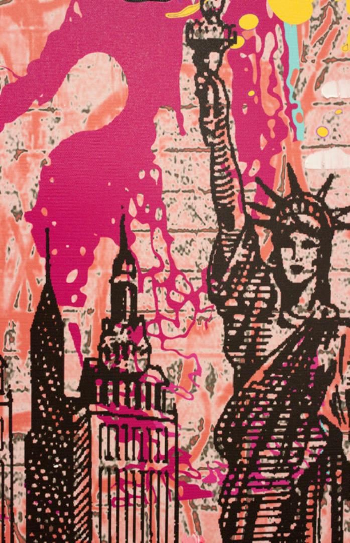 Bright and colorful original mixed media on canvas, hand signed by the artist. This artwork comes gallery wrapped ready to hang. The gallery-wrapped canvas eliminates the need for framing, allowing for effortless display in your home. Art size 40x36 inche