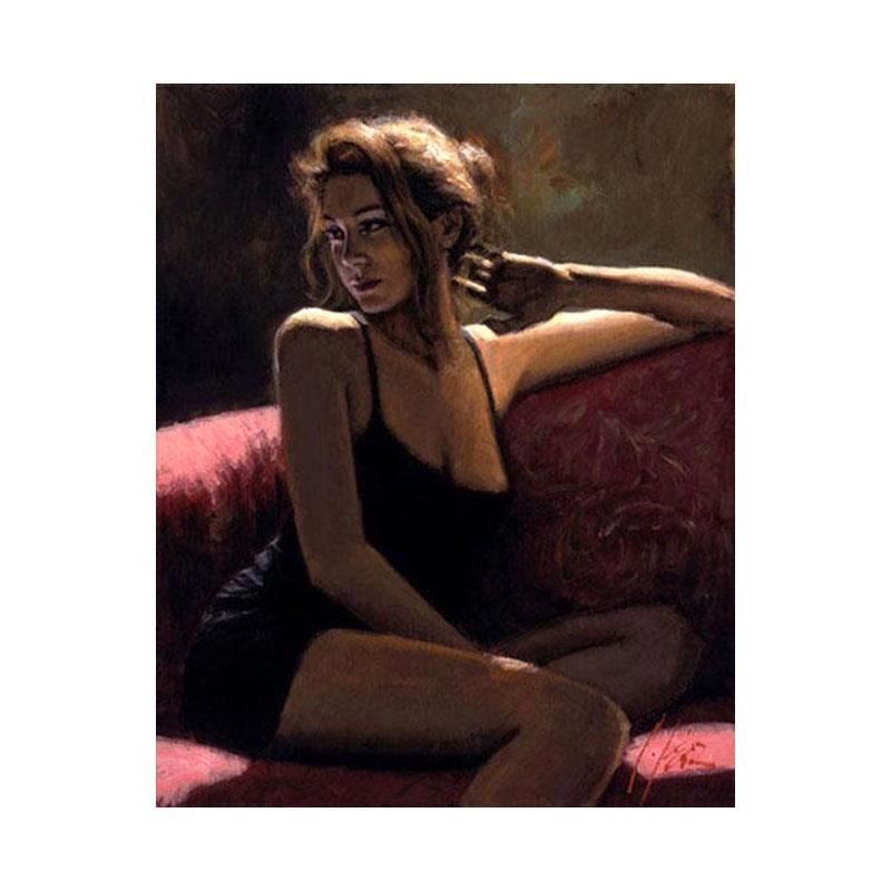 "Brocatta Rosa" is a hand textured limited edition giclee on canvas board by Fabian Perez. The piece is numbered and hand signed. Includes a certificate of authenticity. Measures approximately 16.5" x 13"