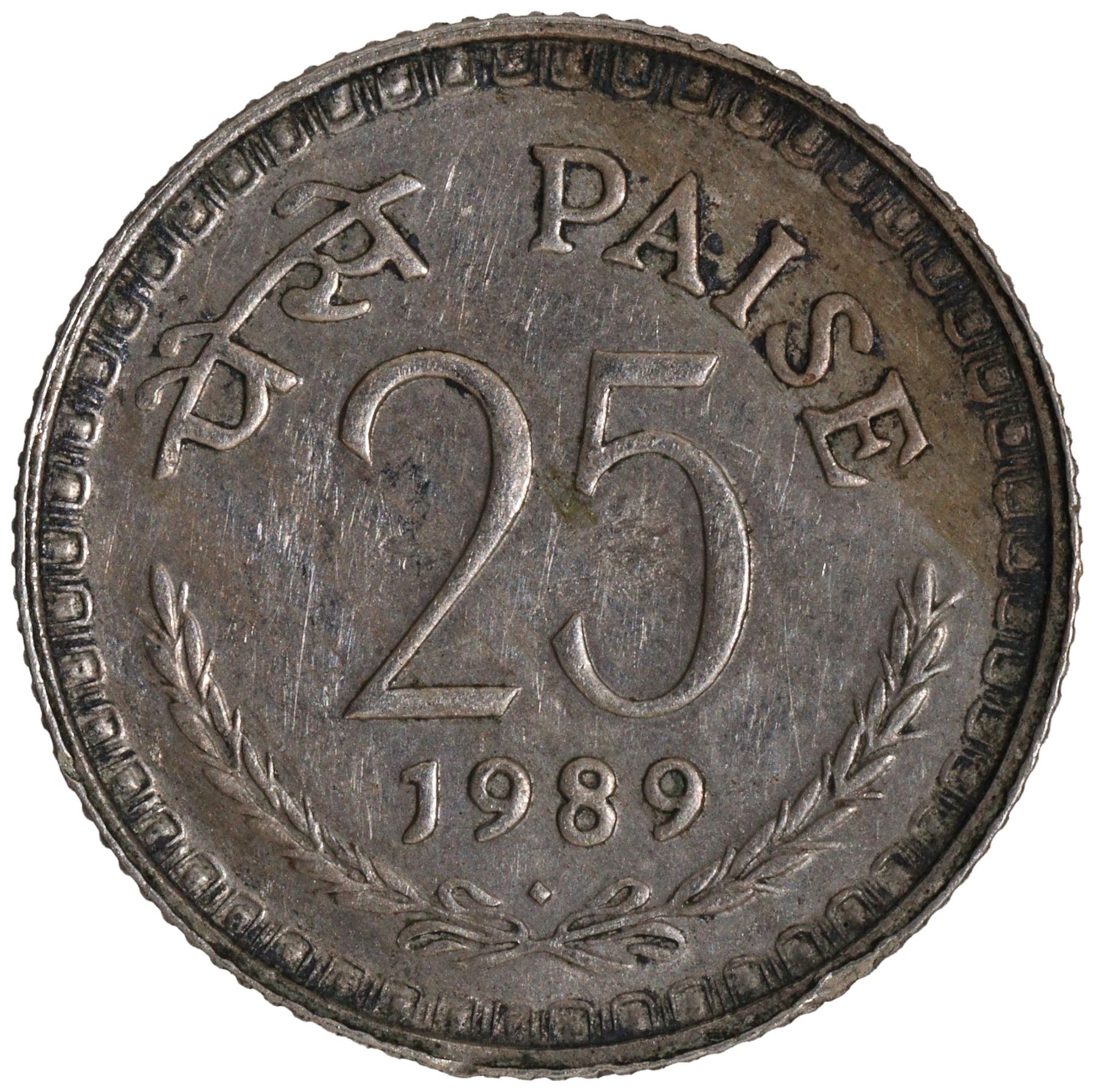 Republic India, 1989, Copper-Nickel 25 Paise, Error: Obverse Lakhi/Brockage Error, complete and deep lakhi brockage on the reverse with mirror impressions, 2.5g, 18.9mm, about very fine, Very Rare.