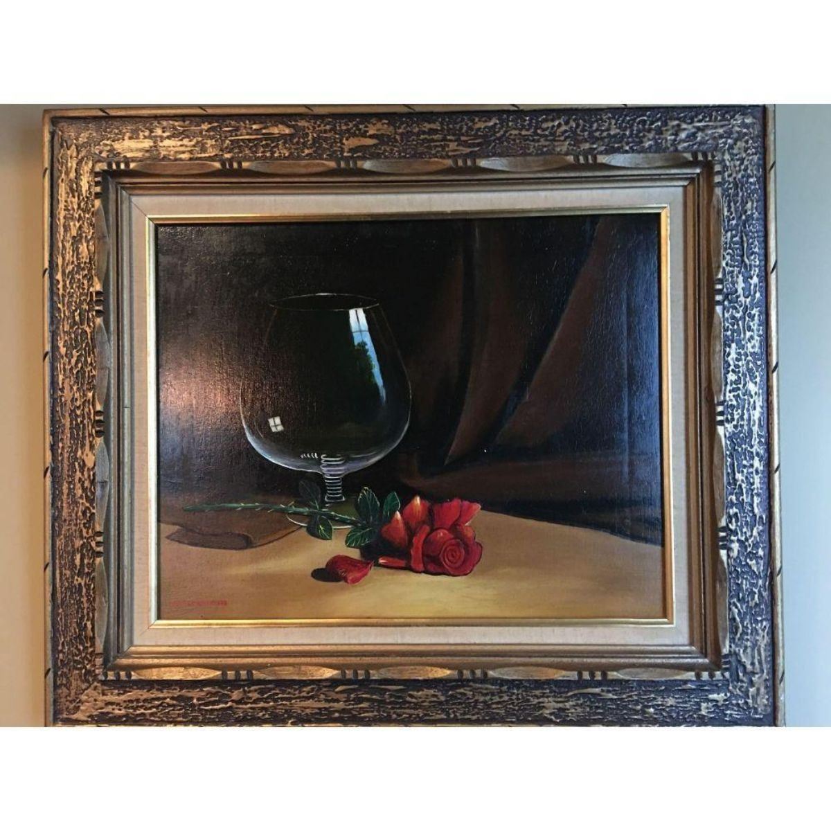 Original oil on canvas, signed by artist and framed. 1998 This still life scene depicts the aftermath of broken love. Love once had but now lost.Â