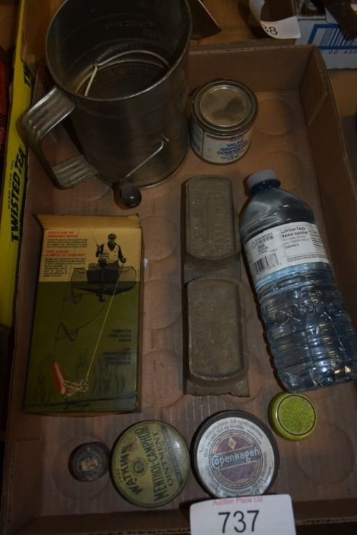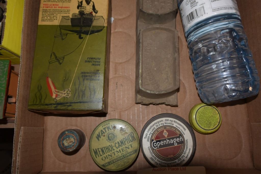 compound, copenhagen tin, watkins ointment  tin, fishing tackle