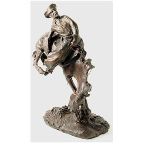 This is a very impressive bronze that captures the intense action of the man and the horse. The accuracy of anatomy and scale that Remington achieved is remarkable. This sculpture exhibits the midair movement that Remington was so well known for. It has been said of him that he tried to sculpt horses with all four hooves off the ground, and this bronze displays his incredible ability to achieve that effect. This statue measures 9.5? x 10? x 3?, is a great example of artistic mastery, and is set at a great price.