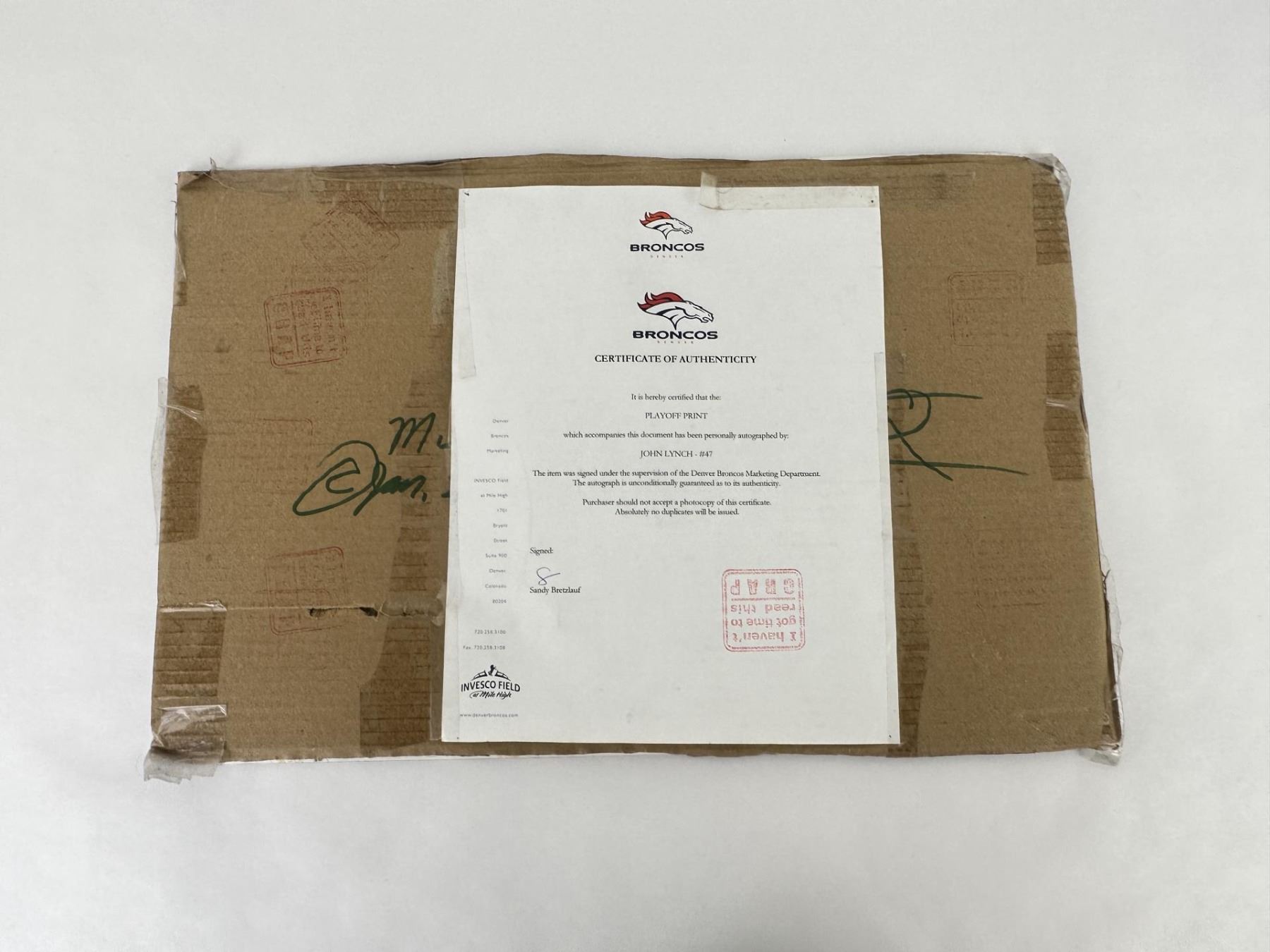 Measures 18 1/2" by 12 1/4". Includes COA.