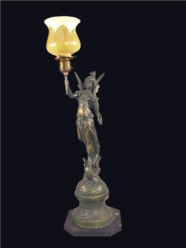 Bronze Angel Lamp with glass shade. Artist, Mage. 28 inches tall.