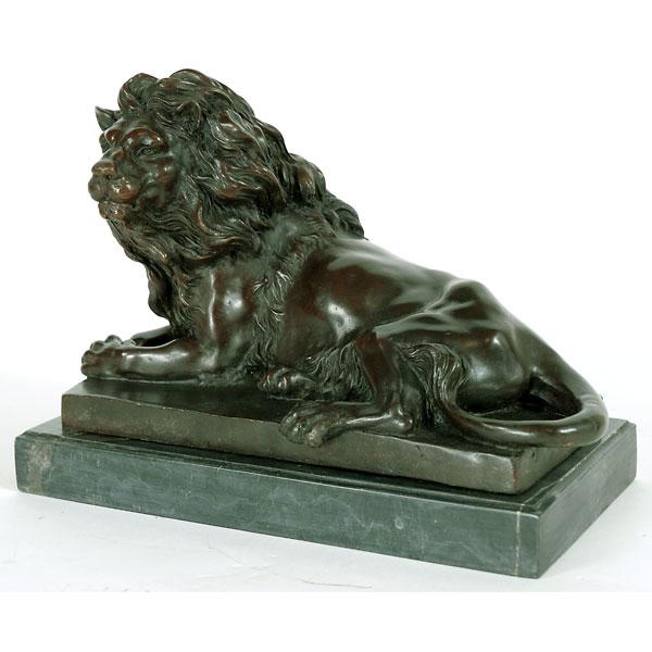 Library Lion Antique Bronze Patina Bronze & Marble Lost Wax Process Artist Sculpted Weight: 12 LB
