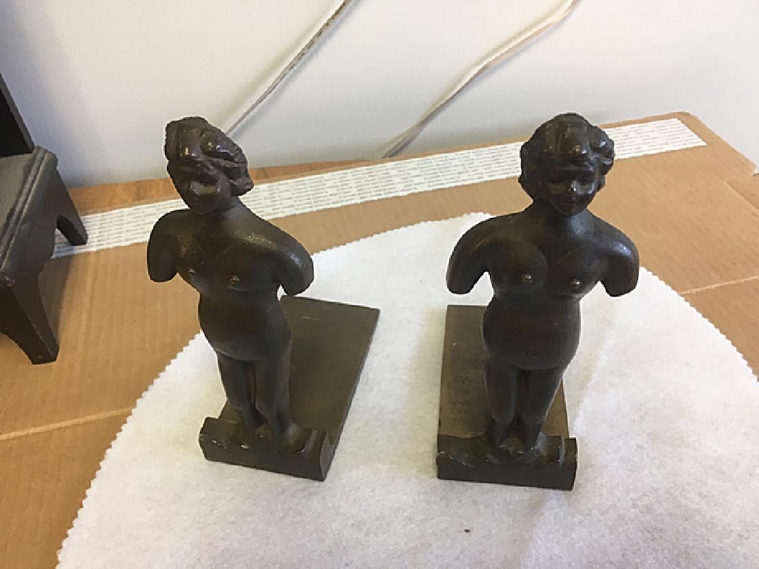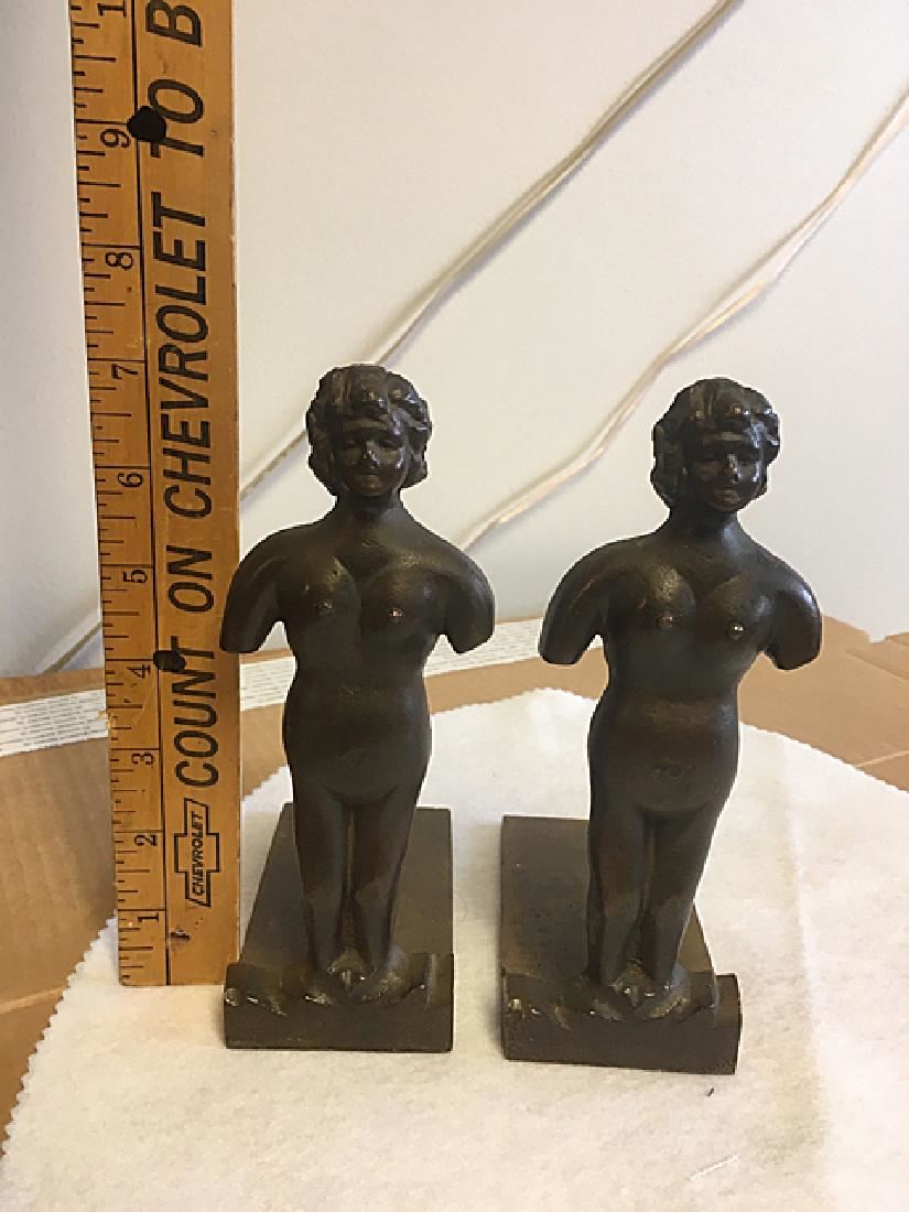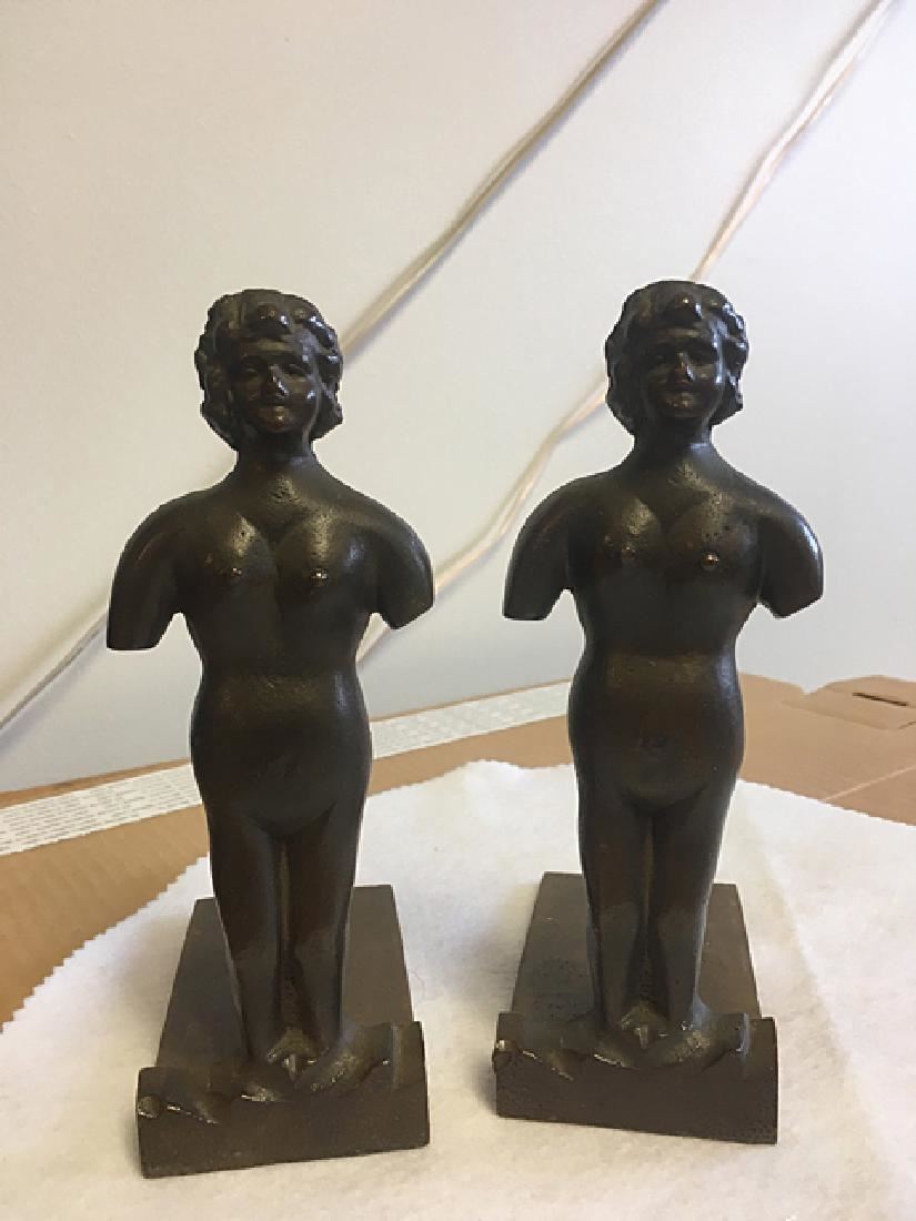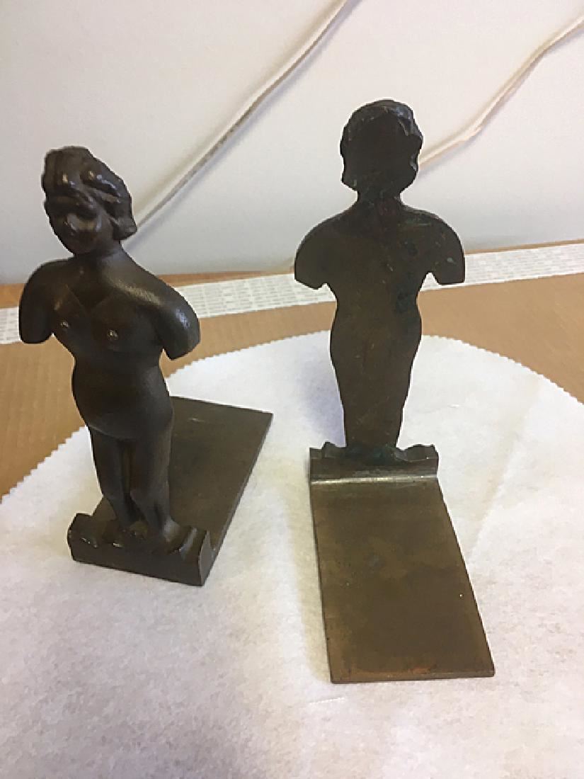 Pair of bronzed book ends, busts of nude ladies, measure approx. 7" tall