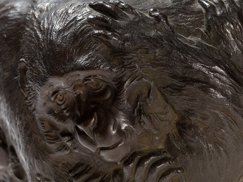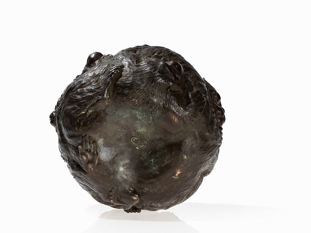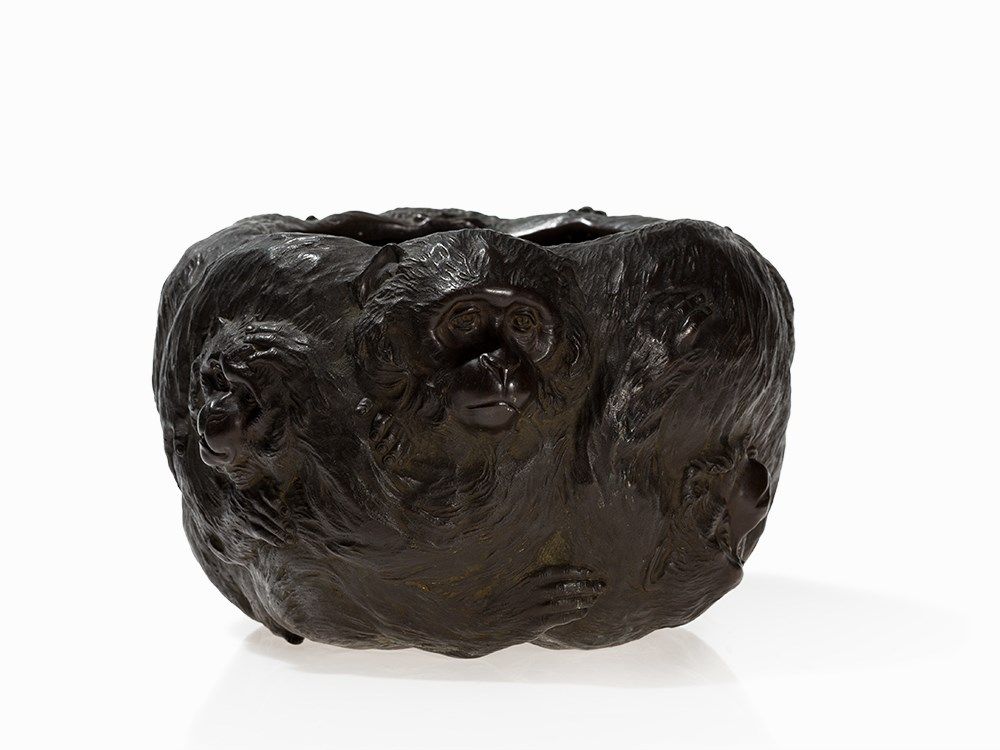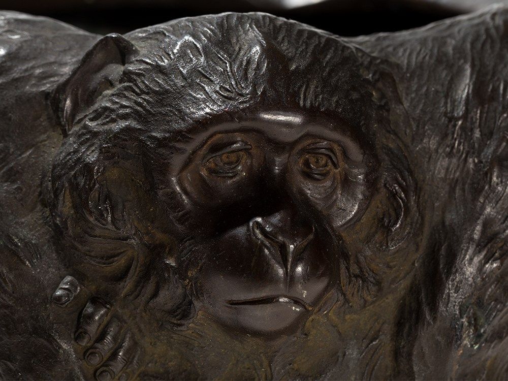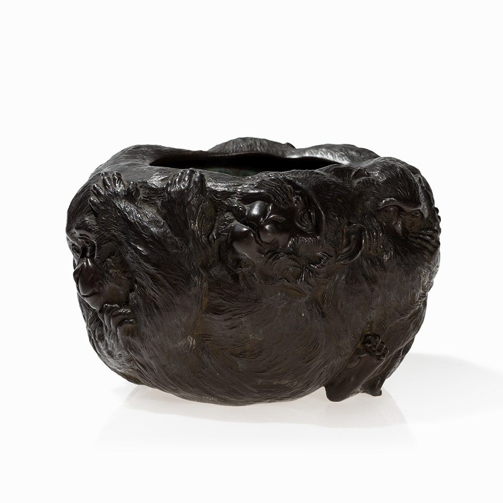 Bronze Bowl with Monkeys in Relief and Seal Mark, Meiji
