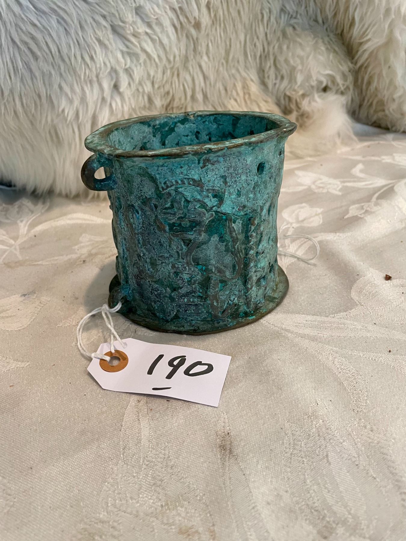 A bronze brazier for sale in the auction is an elegant and sturdy piece, beautifully crafted with intricate designs that reflect its historical significance and functional artistry in warming and cooking.