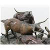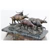 On marble base. Signed illegibly. Inspired by Remington. Approx. 13" H x 24" W x 11" D.