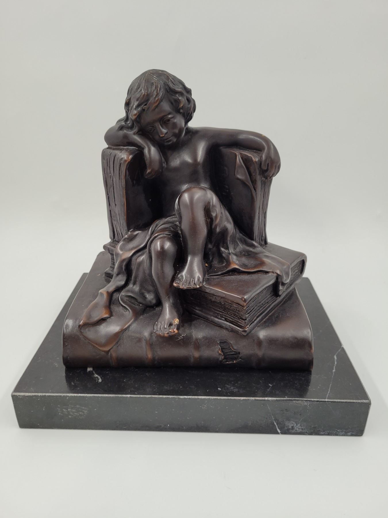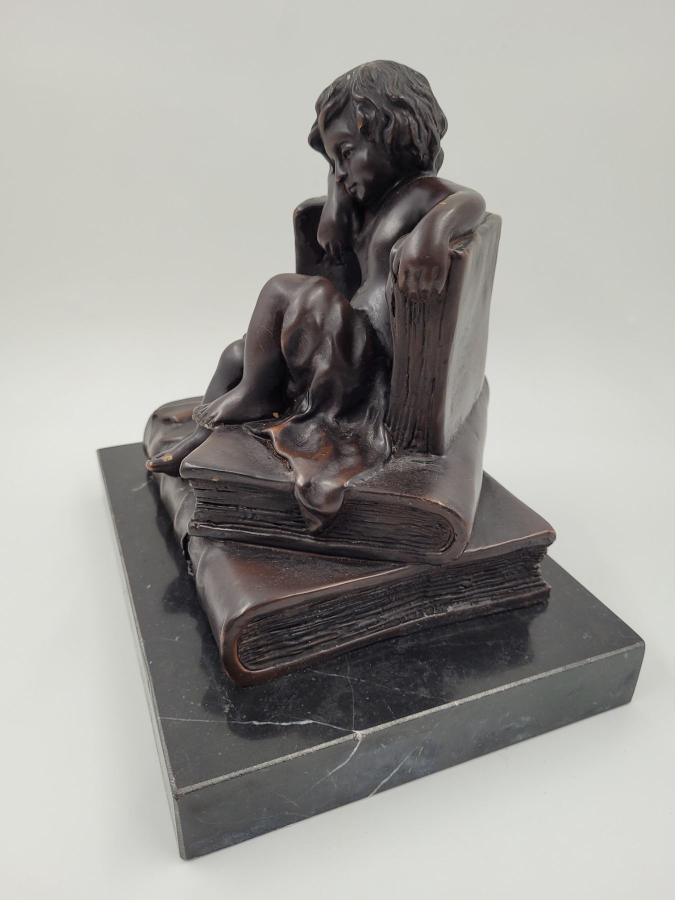 Bronze Child Reading Sculpture