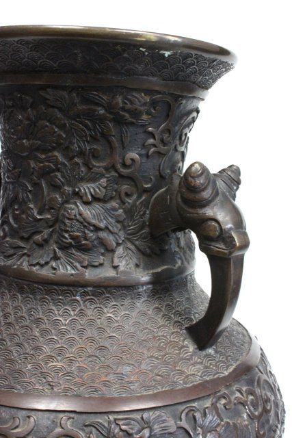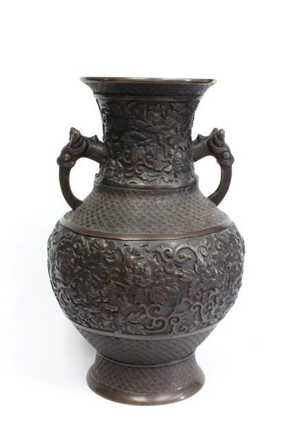 With floral motif. Hole drilled in bottom. Approx. 16" H x 10" W.