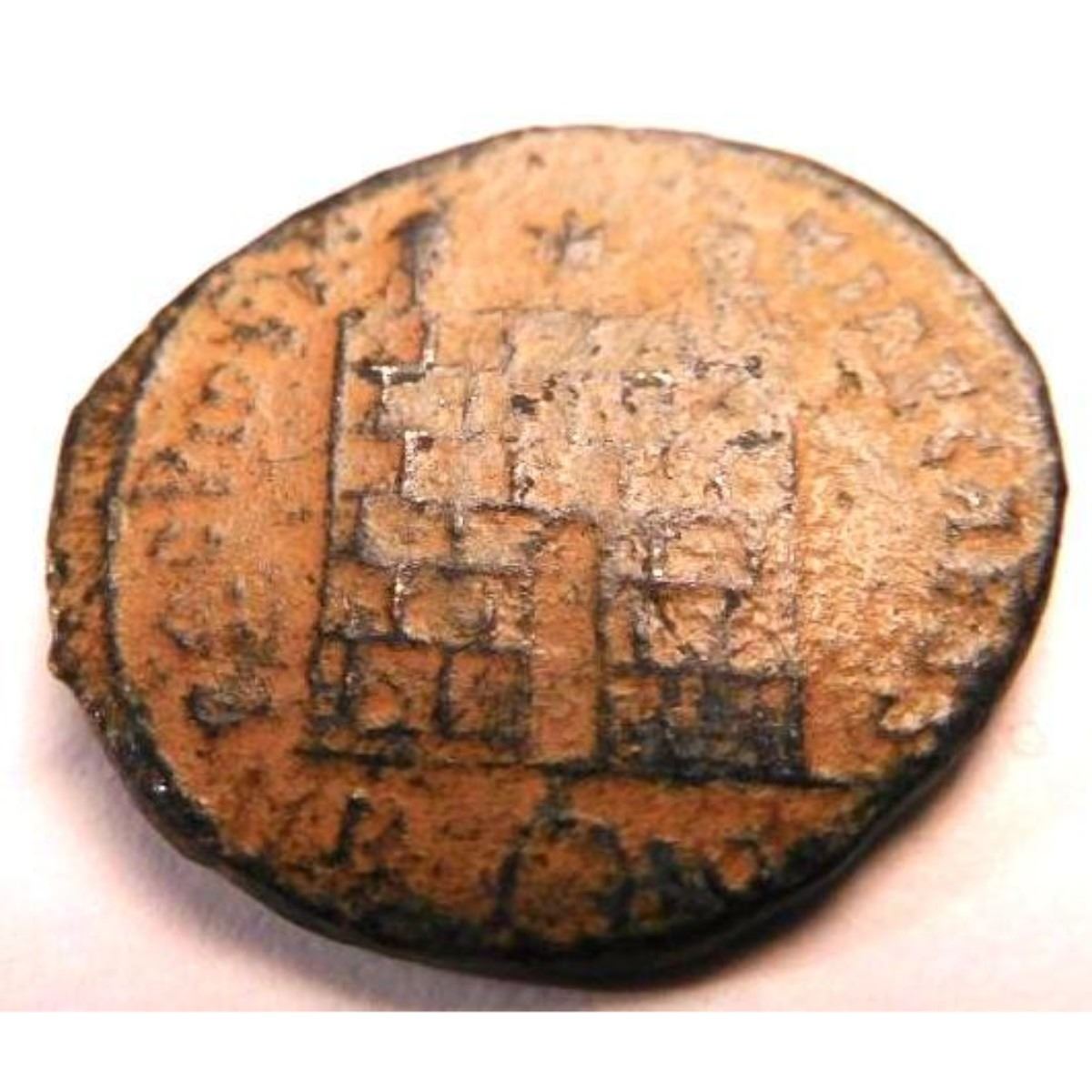 The reverse on this coin features a campgate, and reads: PROVIDENTIAE CAESS "(Dedicated to) the foresight of our Caesars". Constantine II was the eldest son of Constantine the Great, and was born in 311 A.D. From 337 A.D. to 340 A.D. he reigned jointly with his younger brothers, Constans and Constantius II, but eventually sought to rule outright. His efforts were rebuked by Constans, who had him ambushed and killed in 340 A.D. JC-30101-88 JC-30188