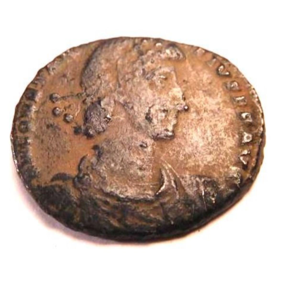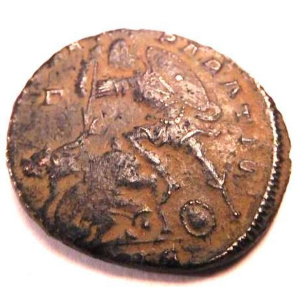 The reverse of this coin shows the emperor stabbing a hapless victim to death, a gruesome act by today's standards, but not apparently during the Roman Empire: the legend reads FEL TEMP REPARATIO, meaning roughly "the return of happy times" (!). Constantius II, born in 317 A.D., was the second of three sons born of Constantine the Great. He initially ruled alongside his brothers Constantine II and Constans. When Constanstine II was defeated by Constans, the latter gained sole control of the western empire, leaving Constantius II to rule the eastern territories. When Constans was himself later defeated by the usurper Magentius, Constantius successfully attacked Magentius, becoming sole Augustus. Constantius II issued a tremendous amount of coinage, and his coins are among those most commonly found in hoards. He fell ill and died in 361 A.D. JC-30101-95 JC-30195