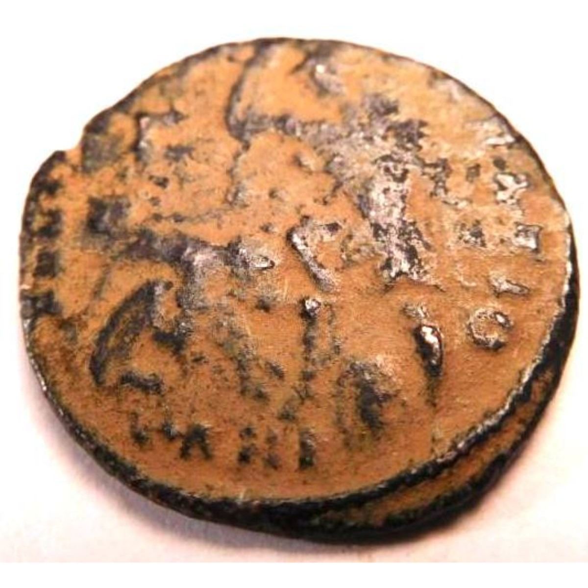 The reverse of this coin shows the emperor stabbing a hapless victim to death, a gruesome act by today's standards, but not apparently during the Roman Empire: the legend reads FEL TEMP REPARATIO, meaning roughly "the return of happy times" (!). Constantius II, born in 317 A.D., was the second of three sons born of Constantine the Great. He initially ruled alongside his brothers Constantine II and Constans. When Constanstine II was defeated by Constans, the latter gained sole control of the western empire, leaving Constantius II to rule the eastern territories. When Constans was himself later defeated by the usurper Magentius, Constantius successfully attacked Magentius, becoming sole Augustus. Constantius II issued a tremendous amount of coinage, and his coins are among those most commonly found in hoards. He fell ill and died in 361 A.D. JC-30101-92 JC-30192