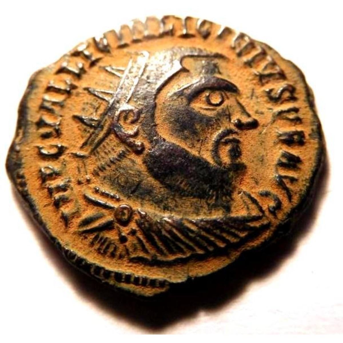 Born in 263, Licinius I rose to the rank of Augustus of the West, when so appointed by Gallerius. The edict issued by Gallerius, granting some rights to Christians, was reissued jointly by Licinius I and Constantine the great. But the two were competitors, and Constantine eventually had Licinius I executed in 325 A.D. Obverse: IMP C VAL LIC LICINIVS PF AVG ("Emporer, Ceasar, Valerius Licinius, pius and happy, Augustus"); Bust of Licinius, facing right. Reverse: IOVI CONSERVATORI ("Jupiter protects our emperors"); Jupiter standing left, chlamys across left shoulder, holding Victory on globe and leaning on sceptre, eagle at left with wreath in its beak, captive right, K over II Mu in right field. Mintmark SMALA. RIC VII Alexandria 28 var (engraver's error, K instead of X on rev.) Minted in Alexandria Reference: RIC VII 28, A $50 reserve A BEAUTIFUL EXAMPLE - MUSEUM QUALITY JC-30101-1