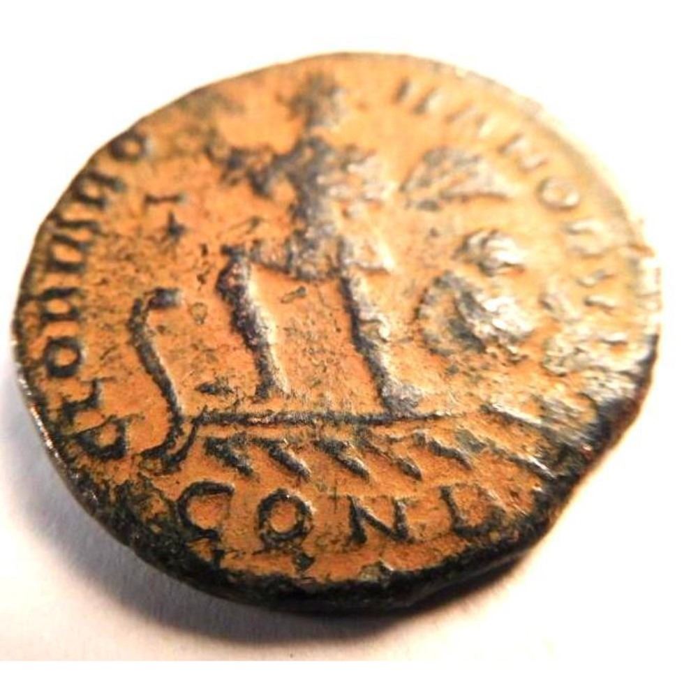 The reverse depicts the emperor standing, and reads GLORIA ROMANORVM "the glory of Rome". Theodosius I was born on January 11th in the year 347 A.D. He was the lat Roman emperor to control both the eastern and western territories. While Constantine the Great was the first emperor to convert to Christianity, it was his general, Theodosius I, who ushered in Christianity as the official state religion. A person might now be condemned for practicing the pagan religion his forefathers were required to practice. Theodosius I died of disease in 395 A.D. � JC-30101-79