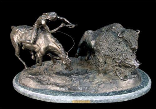Bronze "Double Buffalo Hunt" by C.M.Russell 32" x 18"