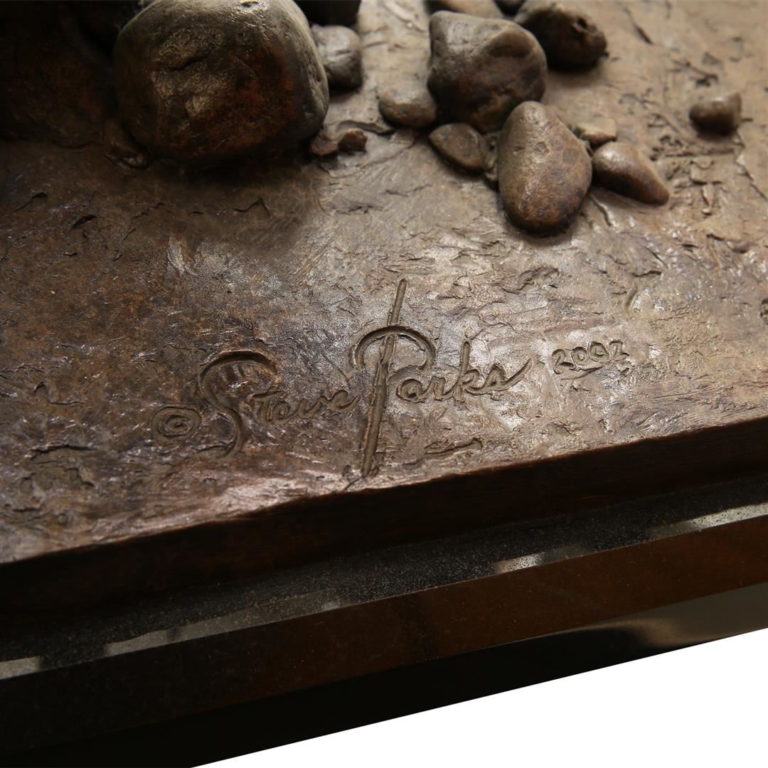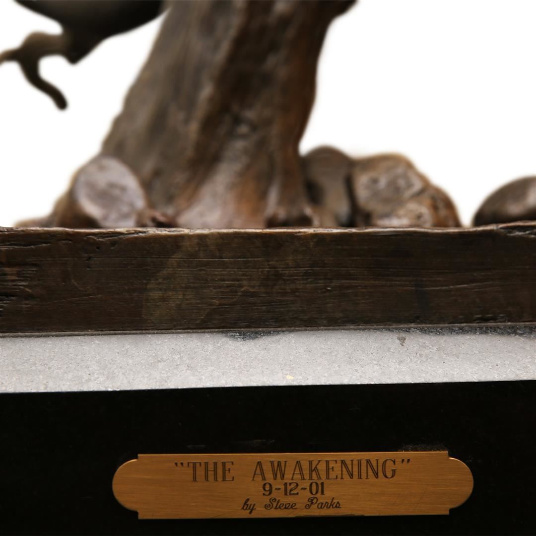 A Solid Bronze Eagle. Incredible detail. Numbered 8 out of 50. This was named "The Awakening" on 9/12/2001 by Artist Steve Parks. Base measures 19" long by 14" wide, statue measures 28" wide, 28" long and 52" height.