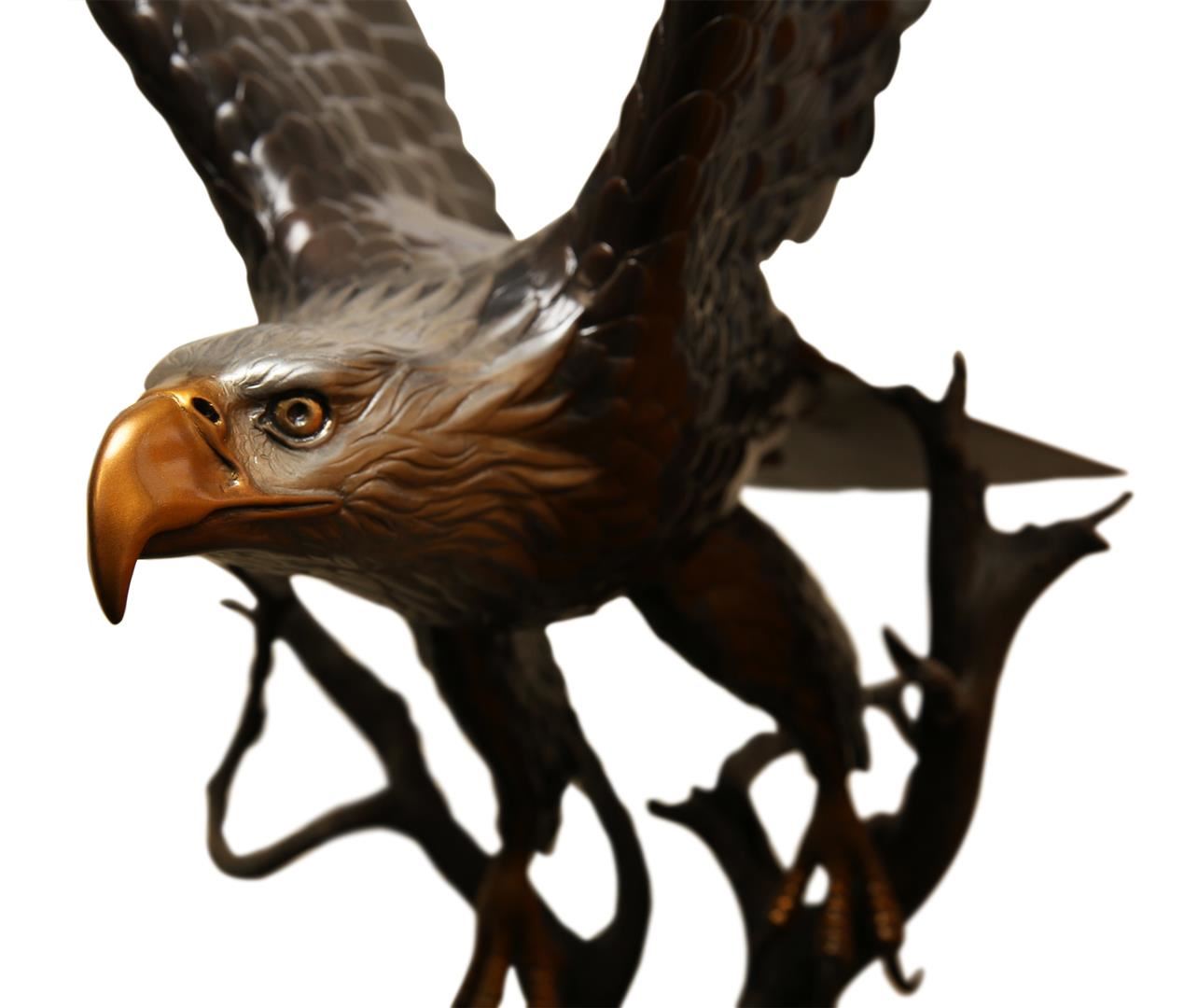 A Solid Bronze Eagle. Incredible detail. Numbered 8 out of 50. This was named "The Awakening" on 9/12/2001 by Artist Steve Parks. Base measures 19" long by 14" wide, statue measures 28" wide, 28" long and 52" height.