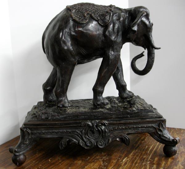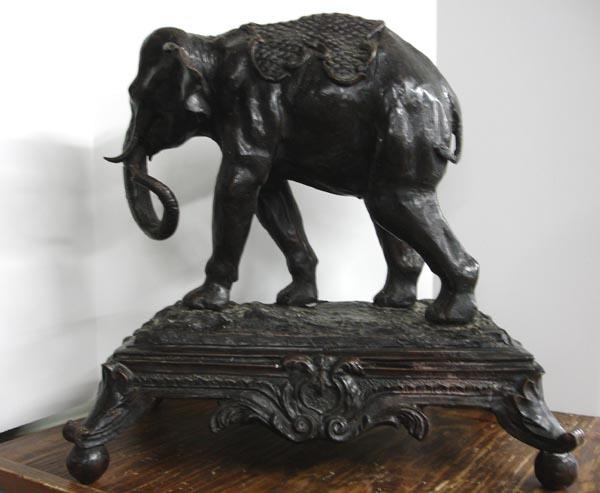 Bronze Elephant MUST BE PICKED UP. The very tip of the tusks are damaged. Measures 22''Hx22''Lx14''D.