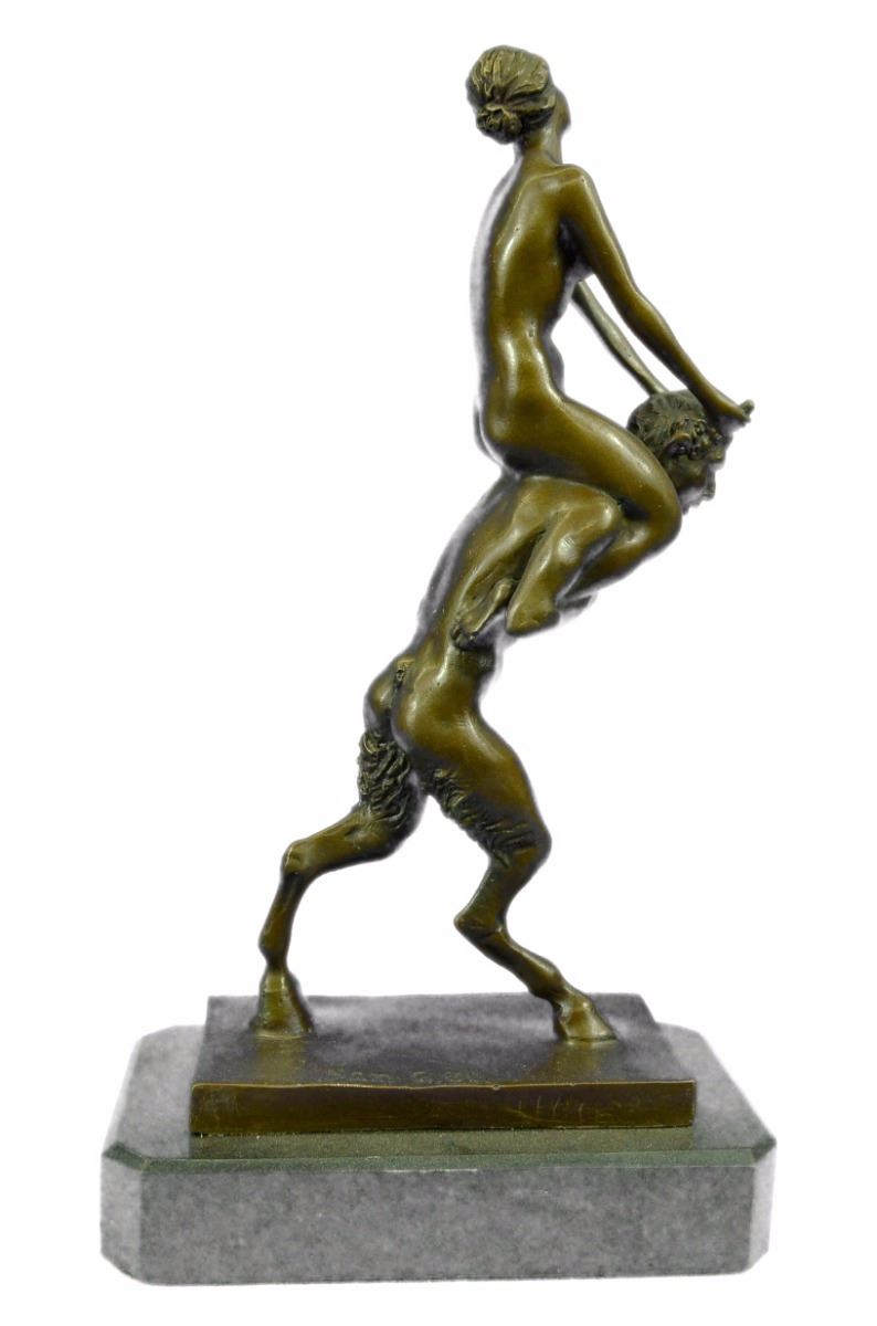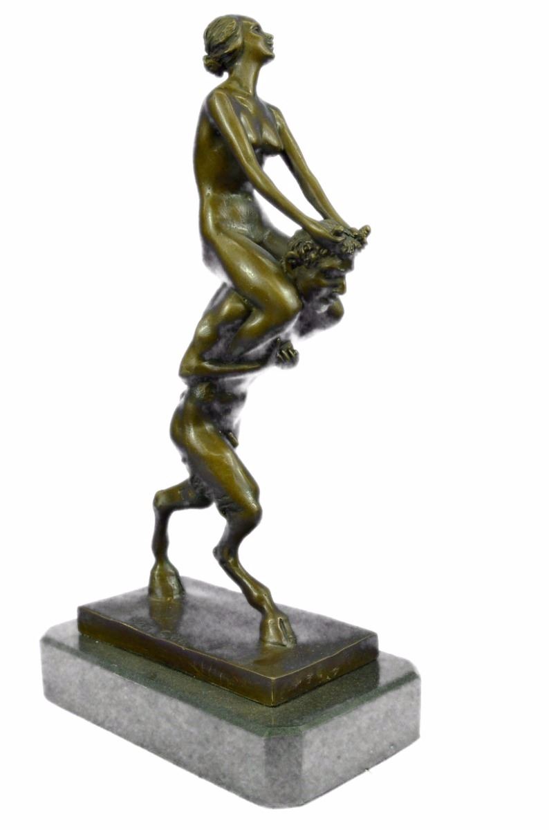 What A Splendid Figure Of Bronze! Very Nice Art Deco Vienna Bronze - Satyr With A Nude Nymph, Sitting On His Shoulders. This Sculpture Is Affixed On Finest Marble And The Sculpture Shows A Young Faun With A Sweet Little Nymph On His Shoulders. Placed On A Well Shaped Marble-Base The Figure Is A Great Showpiece For Friends Of Art Deco And Vienna Bronzes. The Sculpture Is Signed By The Artist Nam Greb Base. It Is A True Detailed Museum Bronze Cast And Focal Point In Every Exhibition! An Absolute Eye-Catcher For Friends Of Bronze Sculptures, Art Deco Or Vienna Bronze Collectors And Fans Of Satyr Bronze Figures. Bronze Dimensions With Marble Base: Height 11 X Width 5 inches. Weight: 5 Lbs.